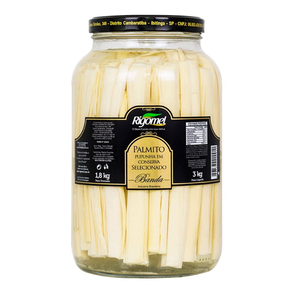 Palmito de Pupunha Banda em Conserva Rigomel 1,8kg