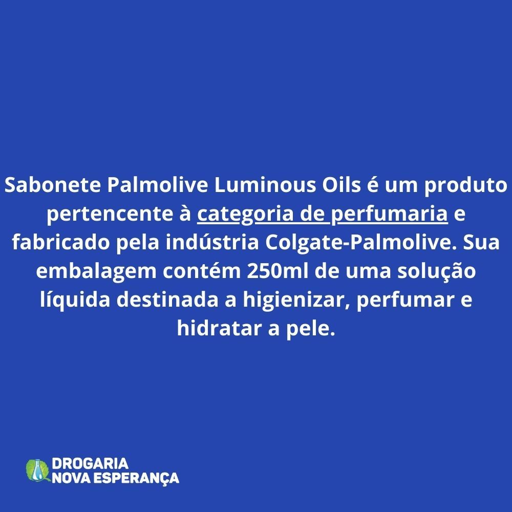 O Sabonete Palmolive Luminous Oils é a escolha perfeita para quem busca uma experiência luxuosa de limpeza e cuidados com a pele. Formulado com uma combinação de óleos essenciais, ele não apenas proporciona uma higienização profunda, mas também oferece uma hidratação intensa, deixando a pele macia e radiante. Sua textura cremosa e suave transforma o momento do banho em um ritual de beleza, enquanto os ingredientes naturais trabalham para nutrir a pele, preservando sua umidade natural. Com uma fragrância delicada que envolve os sentidos, o sabonete deixa uma sensação de frescor e bem-estar.