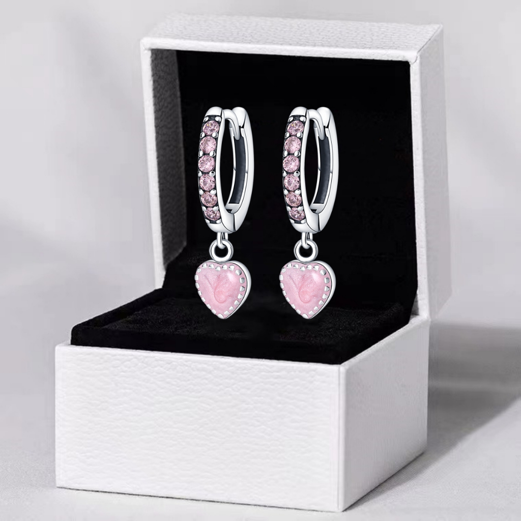 Pandach Brincos originais de coração de pêssego rosa s925 Prata Esterlina Jóias requintadas Presente de bricolage