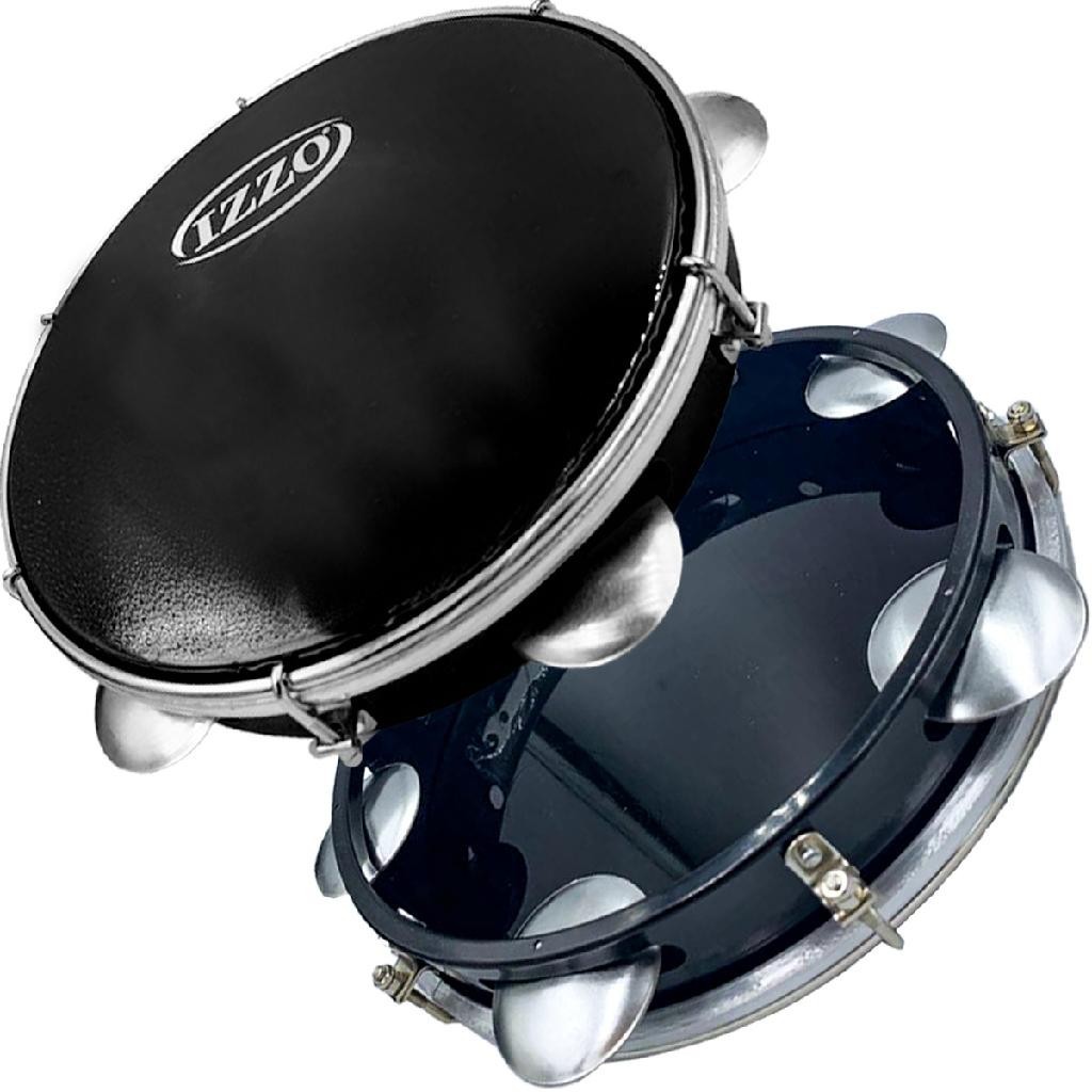 Pandeiro 10 Polegadas Izzo Preto Em Abs Pele Preta com Chave