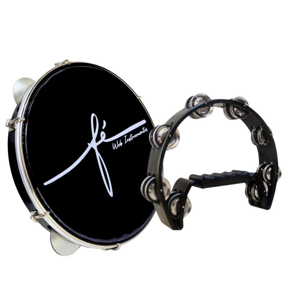 Pandeiro Pele Preta Fé BK Web Instrumentos+ Kit Percussão