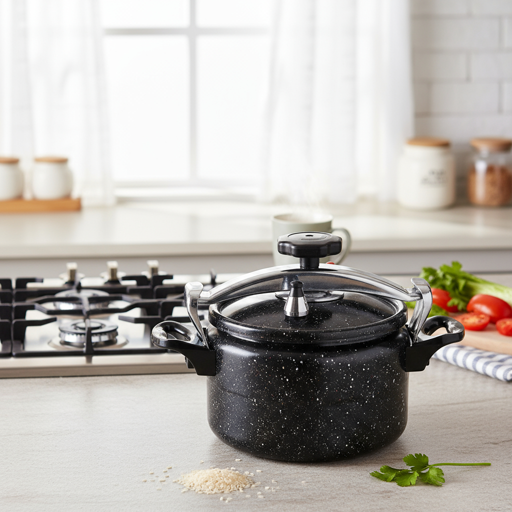 Panela Alta Pressão Indução Antiaderente Revestimento Mármore Cerâmico 6 Litros Preta