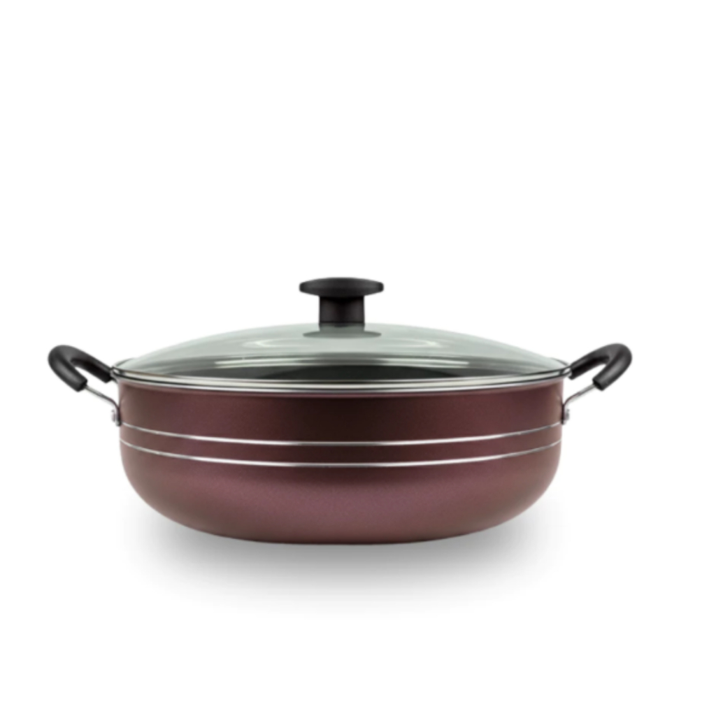 Panela Antiaderente com Tampa de Vidro 30cm Robusta WOK Alça Caçarola Silver Lines Qualidade Premium