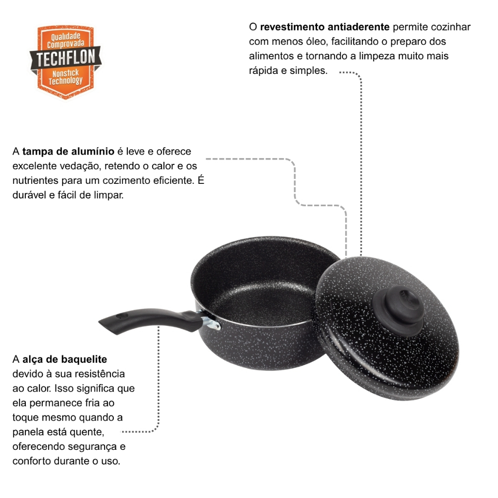 Panela Antiaderente Tampa De Aluminio 22Cm Preto Nacional