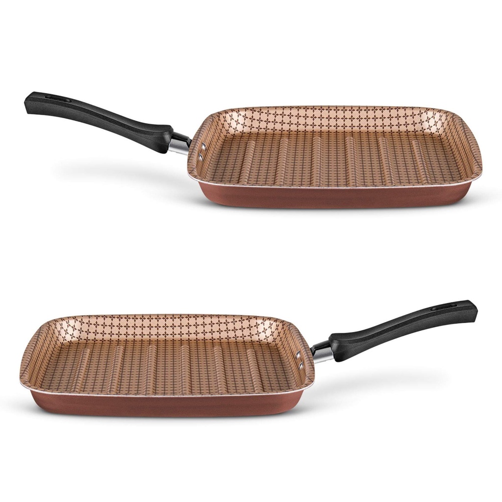 Panela Bistequeira Grill Antiaderente, Grelha Carnes Alumínio Flora Chocolate MTA - 8713