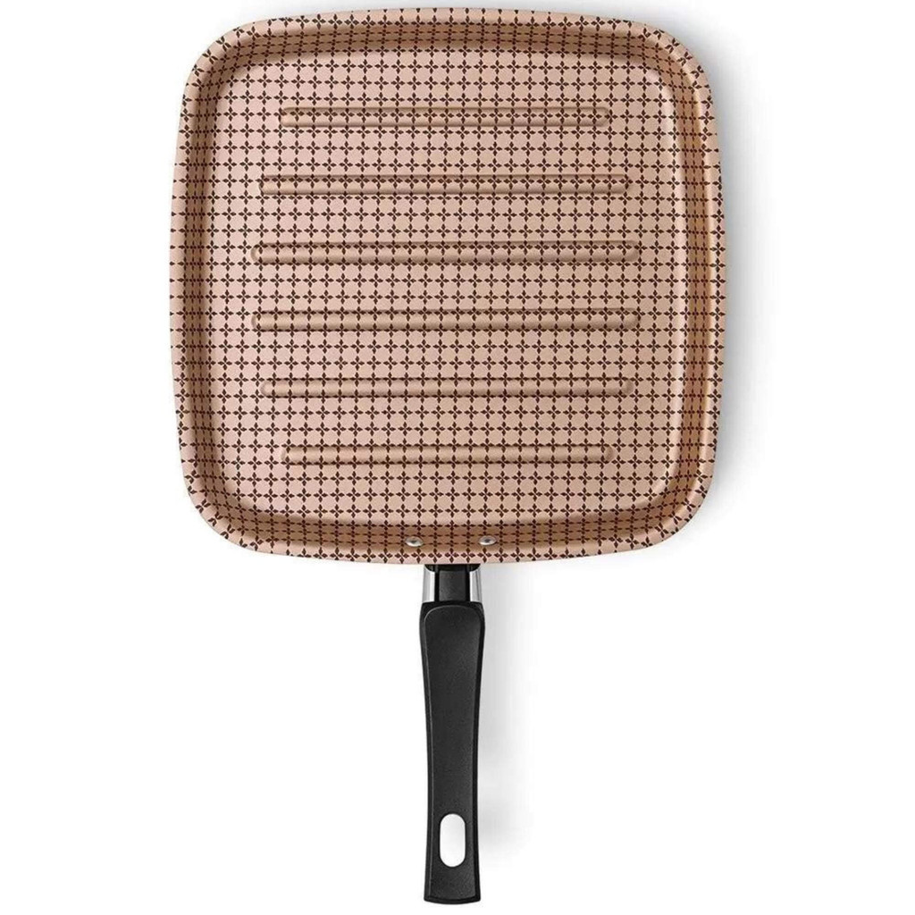 Panela Bistequeira Grill Antiaderente, Grelha Carnes Alumínio Flora Chocolate MTA - 8713