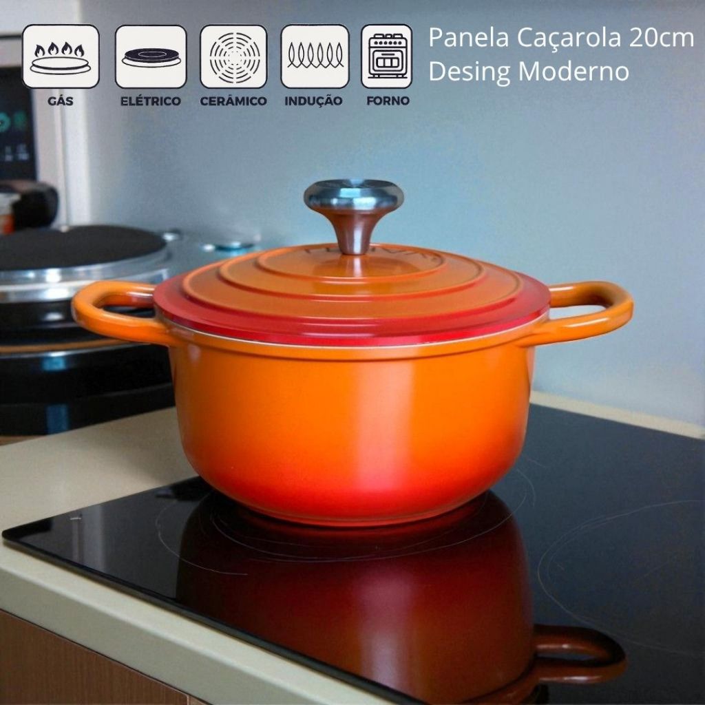 Panela Caçarola Nanocerâmica 20cm Antiaderente 2,7L Fogão Indução Gás Elétrico Ceramico Forno Cores Vermelha Laranja