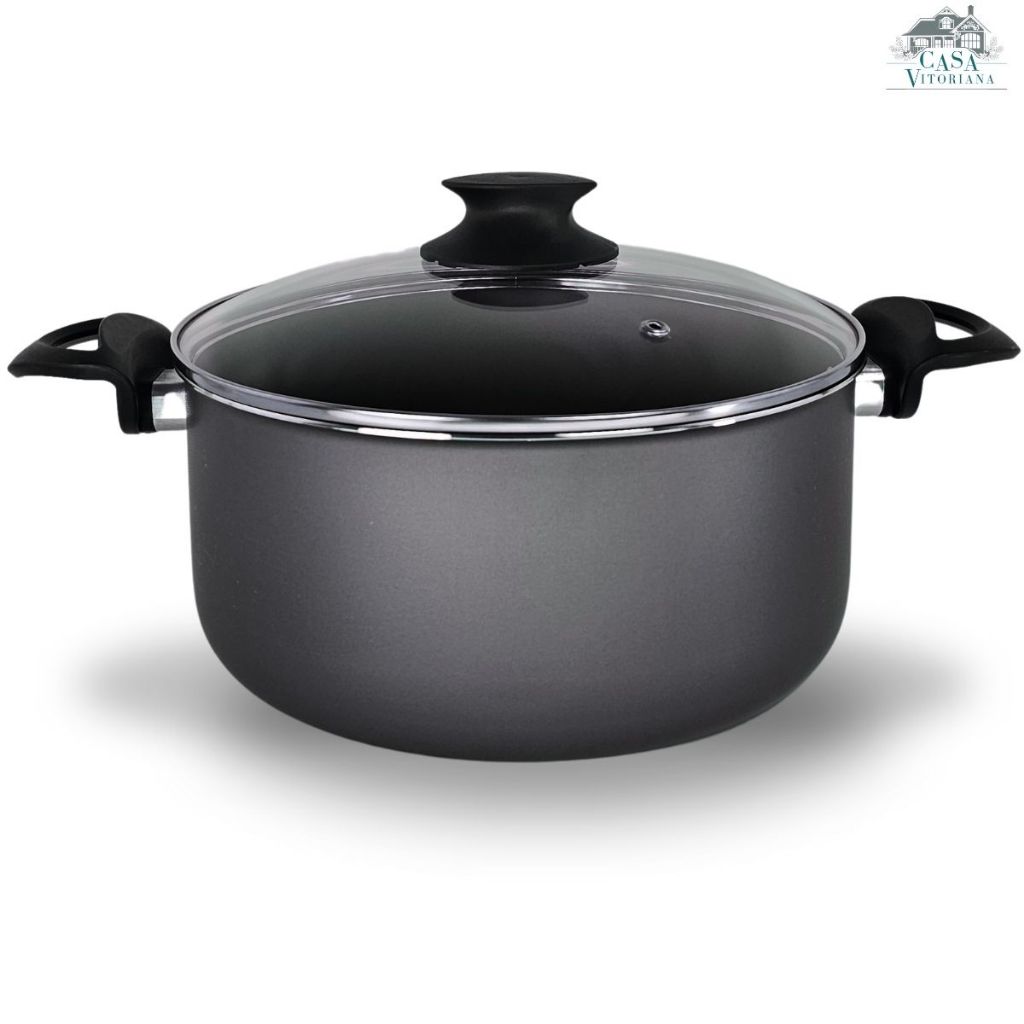 Panela Caçarola TAMANHO GRANDE 24 cm Tampa de Vidro Antiaderente 5 Camadas de Teflon Preto Grafite