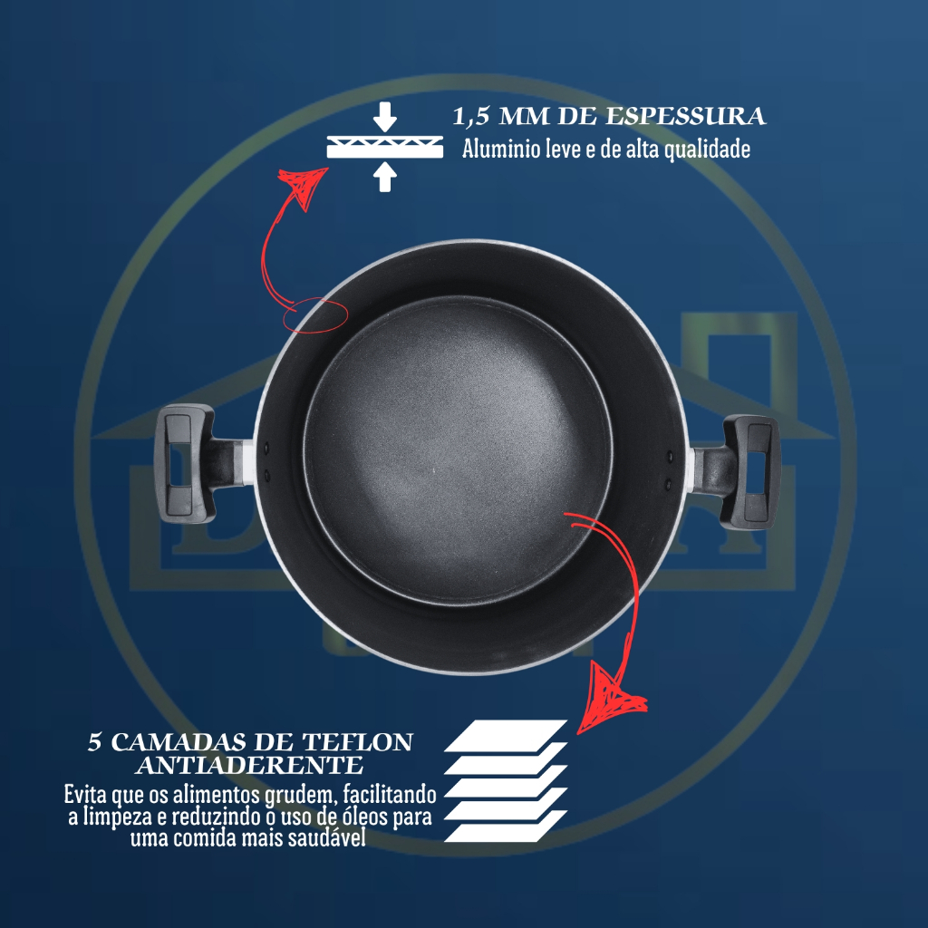 Comece a revolução na sua cozinha com o caldeirão antiaderente de 20cm – a combinação perfeita de design sofisticado e funcionalidade avançada, ideal para transformar suas receitas favoritas em verdadeiras obras-primas com total praticidade. Apresentamos o caldeirão antiaderente teflon “Dakasa” de 20cm, a escolha ideal para quem busca praticidade e qualidade na cozinha. Com 1,5mm de espessura, ele oferece durabilidade e uma distribuição uniforme do calor, garantindo que suas receitas cozinhem por igual. Sua capacidade de 3,5 litros é perfeita para preparar refeições para toda a família. A tampa de vidro temperado com borda de inox e saída de vapor permite monitorar o cozimento sem perder calor, enquanto a pintura resistente ao calor mantém o caldeirão sempre bonito. Além disso, os cabos em baquelite proporcionam segurança e conforto durante o manuseio. Cozinhe com menos óleo, sem grudar, e desfrute de uma limpeza rápida e fácil. Torne suas experiências na cozinha ainda mais prazerosas com nosso caldeirão antiaderente. Descrição do conteúdo: Medidas aproximadas dos itens: - 1 Caldeirão antiaderente teflon com 12,5 cm de altura, 20cm de diâmetro, 3,5 Litros de capacidade. - 1 Tampa de vidro temperado com borda de inox e saída de vapor. Detalhes que Fazem a Diferença As tampas de vidro temperado permitem que você acompanhe o processo de cozimento sem precisar abrir as panelas, enquanto as saídas de vapor e as bordas de aço inoxidável garantem maior eficiência durante o cozimento. Os cabos ergonômicos em baquelite proporcionam conforto e segurança durante o manuseio. Cuidado e Manutenção Simplificados Antes do primeiro uso, siga as instruções de limpeza e cura para proteger e prolongar a vida útil das suas panelas. Durante o uso diário, lave com detergente neutro e esponja macia. Não utilizar produtos que possam arranhar a panela. Para realizar a cura da sua panela antiaderente, comece lavando e secando bem. Em seguida, passe óleo por toda a superfície e espalhe bem. Leve ao fogo baixo e deixe aquecer por dois minutos, após isso, pode desligar o fogão. Depois é só deixar esfriar e lavar de novo. Sua panela estará pronta para o uso!