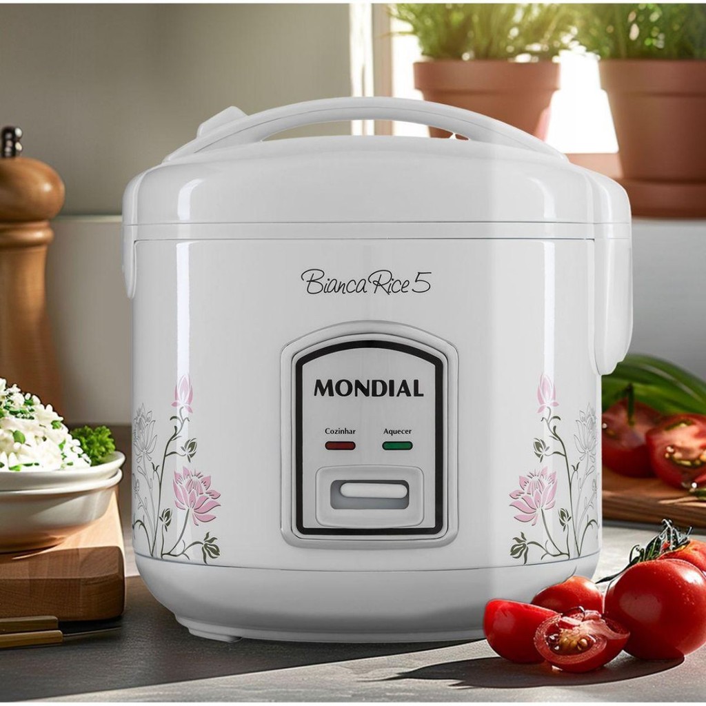 Com a Panela de Arroz Bianca Rice 5 Mondial, suas refeições ganham praticidade, sabor e aquele arroz soltinho que a gente ama! Com capacidade para 5 xícaras, ela é ideal para a família e vai muito além do arroz: risotos, legumes no vapor e muito mais. A função “aquecer” mantém tudo quentinho por até 8 horas. Cozinhar bem ficou mais fácil, rápido e gostoso! CARACTERÍSTICAS: - Capacidade ideal para a família: prepara até 5 xícaras de arroz, na medida certa para o dia a dia. - Função aquecer por até 8 horas: mantém suas refeições sempre fresquinhas e prontas para servir. - Cuba antiaderente e removível: evita que os alimentos grudem e facilita muito na hora da limpeza. ESPECIFICAÇÕES TÉCNICAS: Modelo: NPE-05-5X Tipo: Panela Elétrica de Arroz Cor: Branco Capacidade: 5 xícaras Potência: 400W Tensão (Voltagem): 127V Revestimento interno: Antiaderente Tampa: Basculante com travamento Saída de vapor: Sim, com válvula Coletor de vapor: Sim Tipo de tomada: 10A (2 pinos) Comprimento do cabo: 1,50 m DIMENSÕES: Altura: 24cm Largura: 22,5cm Comprimento: 21,5cm Peso: 1,4kg DICA DO MINEIRINHO: Além de fazer um arroz bão que só, essa panela ainda enfeita a cozinha. Chique e prática, uai! DUVIDAS FREQUENTES: - A panela prepara apenas arroz? Ela vai muito além disso. Você pode preparar risotos, legumes no vapor, arroz doce, molhos e até carnes mais macias. É uma verdadeira ajudante na cozinha! - A tampa é segura? Com certeza! A tampa é basculante com trava, oferecendo mais segurança durante o uso e na hora de transportar a panela. - O arroz gruda no fundo da panela? Não! A cuba tem revestimento antiaderente, que evita que os alimentos grudem e ainda facilita muito a limpeza. - Posso preparar legumes no vapor? Pode sim! Ela acompanha um cesto cozi vapor, ideal para cozinhar legumes e verduras sem perder os nutrientes. Praticidade e saúde no mesmo aparelho. ITENS INCLUSOS: - 01 Panela de Arroz Elétrica Mondial Bianca Rice 400W 127v Branca 5 Xícaras Panela Antiaderente IMAGENS MERAMENTE ILUSTRATIVAS. O prazo de devolução, conforme o artigo 49 do CDC (Código de Defesa do Consumidor), é de 7 dias corridos a partir do recebimento do produto. Recomenda-se que a devolução seja feita com o produto em perfeitas condições, sem danos ou marcas de uso, utilizando uma embalagem protetora original. A ausência dessa embalagem ou danos a ela podem resultar na recusa da devolução. A Garantia Legal é de 90 dias, conforme o CDC - Código de Defesa do Consumidor. Após esse prazo, passa a vigorar a Garantia Contratual, que é tratada diretamente pelo FABRICANTE do item e segue as regras estipuladas pelo próprio. A Garantia Total (garantia legal + garantia contratual) é exibida no campo correspondente deste anúncio. Atente-se à responsabilidade de cada parte e lembre-se que estamos sempre a disposição para esclarecimentos em nosso SAC.