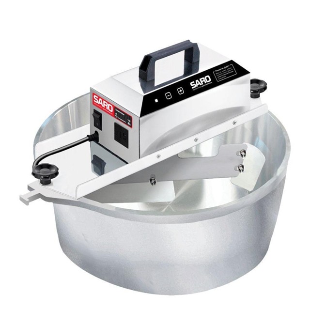 Panela de Brigadeiro Elétrica Saro 21L Prata Bivolt PA21RA Saro é líder na comercialização de panelas para doces e salgados, e está trazendo para você a Panela misturadora de doces e salgados com capacidade de até 21 litros. A panela Saro é a única na sua categoria que possui velocidade digital, ela apresenta dois botões, um para aumentar e outro para diminuir a velocidade, desta forma, proporcionando muito mais precisão e praticidade ao regular a velocidade desejada. A panela misturadora de doces e salgados possui um motor de alta potência, a única que te permite preparar todo tipo de doce, como brigadeiros por exemplo, podendo também preparar massas para churros, coxinha, risoles, croquete, quibe, empada, pastel, pizza, pão e muito mais. E para garantir a qualidade do produto, este equipamento é certificado pelo Inmetro. Características: - Única com regulador de velocidade digital integrado. - Possui carenagem Slim 50% mais leve do que a concorrência. - Fabricada 100% de Inox próprio para o contato com o alimento. - Possui espátulas de silicone resistentes á altas temperaturas. - Possui motor de alta tecnologia com placa integrada. - Sistema tecnológico RED-Plus, capaz de aumentar a vida útil do motor e diminuir sua manutenção. Compre a original, não aceite imitações! Especificações Técnicas: - Marca: Saro - Modelo: PA21R - Voltagem: Bivolt - Cor: Prata - Capacidade mínima (doces): 1 caixa de leite condensado. - Capacidade máxima (doces): 40 caixa de leite condensado. - Capacidade máxima (massas): 5kg de massa pronta. - Potência do Motor: 130W - Itens Inclusos: Panela de alumínio fundido, Misturadeira de Inox com regulador de velocidade integrado, Manual de Instruções do Usuário - Dimensões do Produto (LxAxP): 38 x 49 x 40 cm - Dimensões dá Embalagem (LxAxP): 43 x 54 x 45 cm - Peso Líquido: 11,8 kg - Peso Bruto: 12,2 kg - Garantia: 6 meses