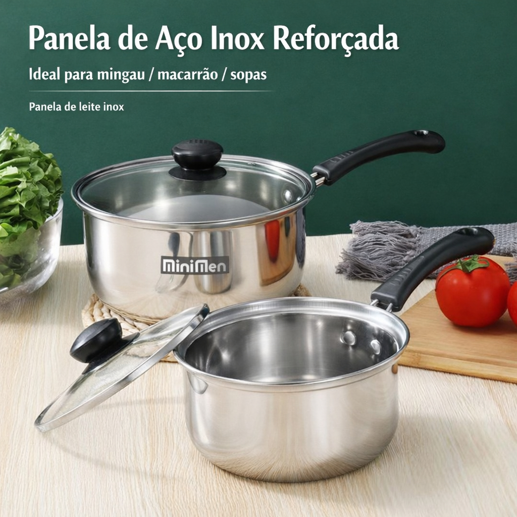 ATENÇÃO!!!!! O Parafuso na Tampa para fechar será encontrado separadamente por conta própria!!!! Se você procura uma panela prática, resistente e bonita, a Panela de Leite em Aço Inox 18cm MM-GUO4 é a escolha ideal! Feita em aço inox reforçado, ela oferece maior durabilidade e excelente acabamento, sendo perfeita para preparar leite, mingau, sopas, macarrão e ferver água com rapidez e eficiência. Possui tampa de vidro, que facilita visualizar os alimentos durante o preparo, e cabo confortável que garante mais segurança no uso diário. Além disso, é compatível com diversos tipos de fogões, incluindo fogão a gás e fogão por indução, garantindo aquecimento uniforme e rápido. 🔥 Um item indispensável para deixar sua cozinha mais completa e funcional! ⭐ Benefícios: ✔ Aço inox resistente e durável ✔ Tampa de vidro prática ✔ Ideal para leite, sopa, macarrão e água ✔ Compatível com fogão a gás e indução ✔ Fácil de limpar e não enferruja ✔ Tamanho perfeito: 18cm 📦Embalagem - 1x Panela Embalado