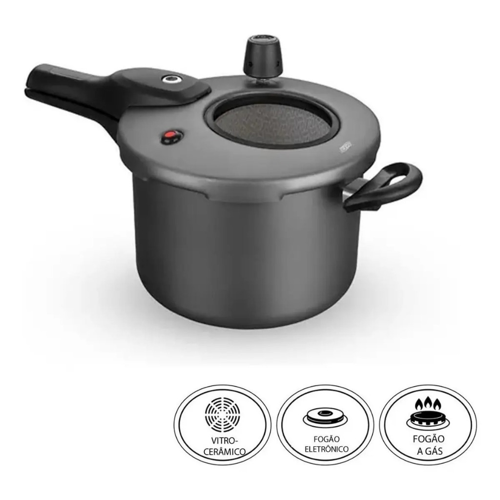 Panela de Pressão MTA Fechamento Externo com Visor de Vidro – Antiaderente Superflon Ultra, Segurança e Praticidade - CORES Descubra um novo nível de praticidade com a Panela de Pressão MTA com fechamento externo, pensada para quem busca segurança, tecnologia e facilidade no dia a dia. Diferente das panelas tradicionais, ela conta com um exclusivo visor de vidro resistente (120mm) — uma inovação que permite acompanhar o preparo dos alimentos sem precisar abrir a panela. O grande destaque da panela de pressão MTA Superior é seu revestimento antiaderente Superflon Ultra com 7 camadas, que evita que os alimentos grudem, facilita a limpeza e ainda permite cozinhar com menos óleo. Ideal para quem quer mais praticidade e menos esforço na cozinha. Além disso, essa panela de pressão com fechamento externo oferece maior segurança no uso, com sistema de vedação eficiente e válvulas de segurança reforçadas, proporcionando tranquilidade durante o preparo. Seu design moderno aliado à estrutura resistente garante cozimento rápido e uniforme, preservando sabor e textura dos alimentos. Perfeita para preparar feijão, carnes, sopas e muito mais, a panela de pressão MTA com visor é indispensável para quem deseja agilidade e controle total no preparo das refeições. Principais vantagens da Panela de Pressão MTA: Sistema de fechamento externo – mais fácil e seguro Visor de vidro resistente (120mm) – acompanhe o preparo sem abrir Revestimento Superflon Ultra com 7 camadas Não gruda e facilita a limpeza Cozimento rápido e uniforme Válvulas de segurança reforçadas Design moderno e alta durabilidade Ideal para uso diário CORES: GRAFITE ou CEREJA (selecione a cor desejada) Garanta agora sua Panela de Pressão MTA com visor de vidro e leve mais tecnologia, segurança e praticidade para sua cozinha! 🍲