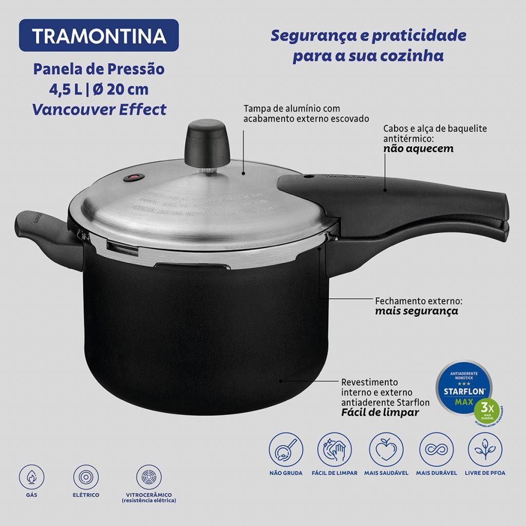 Panela de Pressão 4,5L Tramontina Vancouver Effect em Alumínio Antiaderente Preta