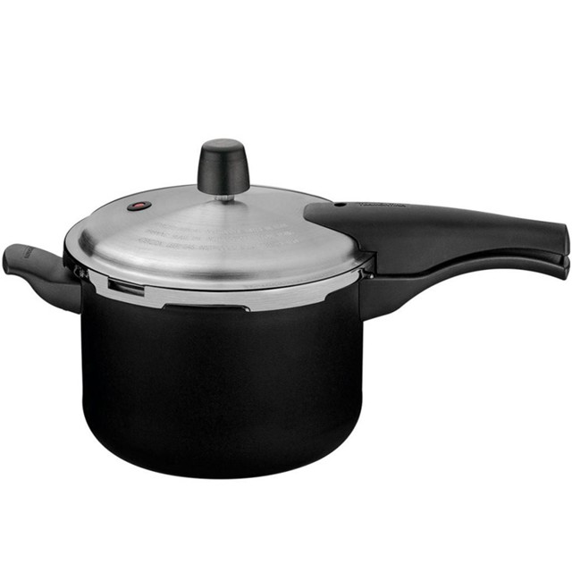 Panela de Pressão 4,5L Tramontina Vancouver Effect em Alumínio com Revestimento Antiaderente Preta Descrição Comercial Com a panela de pressão Tramontina Vancouver Effect em alumínio com revestimento interno e externo em antiaderente Starflon Max preto 20 centímetros de diâmetro 4,5 litros você ganha um aliado de alta qualidade para o preparo das suas refeições. Com ela, suas receitas serão um sucesso absoluto e ficam prontas com maior rapidez. Com tampa de alumínio com acabamento externo escovado, ela proporciona um encaixe perfeito e mantém a pressão ideal durante todo o preparo das refeições. Para garantir sua segurança, a panela conta com alças e cabos superiores e inferiores em baquelite antitérmico, oferecendo assim, maior conforto e estabilidade ao manuseá-la. Versátil, ela ainda pode ser utilizada em diferentes tipos de fogões, sejam eles a gás, elétricos ou vitrocerâmico - resistência elétrica. Escolha as panelas de pressão Tramontina Vancouver e tenha um item que se adapta ao seu estilo de vida na cozinha e eleva suas habilidades culinárias! Características: - Corpo de alumínio com espessura de 3,2 mm que proporciona cozimento rápido e uniforme. - Com revestimento interno e externo de antiaderente Starflon Max que não gruda, é fácil de limpar, mais durável e não é prejudicial à saúde. - Alça, cabos superior e inferior de baquelite antitérmico que oferecem segurança durante o manuseio. - Pode ser utilizada nos fogões: gás, elétrico e vitrocerâmico - resistência elétrica. Orientações de Uso: - Ao utilizar utensílios quentes tenha cuidado redobrado. - Posicione o cabo do utensílio voltado ao centro do fogão. - Em fogões com grade, centralize a peça sobre a chama ou fonte de calor e alinhe o cabo com a grade. - Utensílios quentes devem estar fora do alcance das crianças. - Antes do primeiro uso, lave com esponja macia, sabão neutro ou detergente líquido. - Depois de secar, unte a área interna com óleo ou gordura e leve ao fogo por um ou dois minutos. Deixe esfriar e lave novamente. - Seu utensílio Starflon está pronto para uso com ou sem gordura, sempre em fogo baixo ou médio (nunca superior a 260 °C). - Para mexer os alimentos use somente utensílios de silicone, nylon ou madeira. Com o uso, o cabo e o pegador podem afrouxar devido à dilatação normal dos materiais. Reaperte apenas o suficiente, sem forçar. - Limpeza: Evite a imersão do utensílio quente em água fria. - Nunca utilize produtos abrasivos na lavagem. - Se deixar queimar alimentos, umedeça a área e reserve até que possa remover os resíduos grudados com esponja e sabão. - Para descarte do produto e embalagem siga as orientações de reciclagem vigentes. Ficha Técnica: Marca: Tramontina Tipo de Produto: Panela de Pressão Linha Comercial: Vancouver Modelo: Effect Código Fabricante: 20591420 Código de Barras: 7891112333048 Material: Alumínio - Baquelite Revestimento: Antiaderente Starflon Max Profundidade: Funda Fogão Compátivel: Espessura: 3,2mm Capacidade: 4,5 Litros Diâmetro: Ø 20 cm Dimensão do Produto (A x L x C): 40,8 x 23,1 x 22,9 cm Fogão Compatível: Gás - Elétrico - Vitrocerâmico Cor: Preta Peso: 1,7kg Pode ir em Máquina de Lavar Louça: Não Uso: Doméstico Conteúdo: - 01 Panela de Pressão 4,5L Tramontina Vancouver Effect em Alumínio com Revestimento Antiaderente Preta