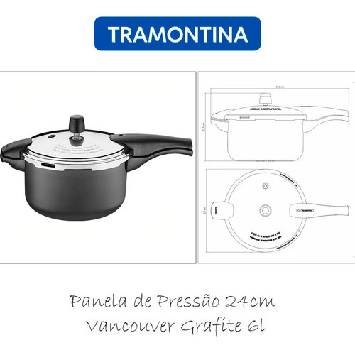 Panela De Pressão 6l Antiaderente 24cm Vancouver Starflon Max Grafite Tramontina