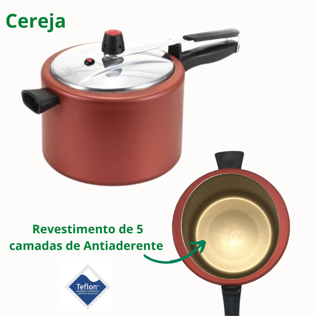 Já pensou em ter em sua cozinha uma panela de pressão eficiente, segura e resistente, que além de colorida e linda, também, não grude os alimentos? Pois, a Panela de Pressão PRETA MARCOLAR em Alumínio com Revestimento Interno e Externo de 5 camadas de Antiaderente TEFLON 20 cm de diâmetro 7 Litros é tudo isso e muito mais! Com um lindo revestimento interno e externo em antiaderente TEFLON na cor PRETA, ela será a estrela do seu fogão. Ela é produzida em alumínio com espessura que proporciona o cozimento rápido e uniforme dos alimentos e vem com cor vibrante. Com certeza, a escolha perfeita para completar seu ambiente e ser a protagonista em sua cozinha! Especificações: Capacidade: 7 Litros Dimensões do produto: 24,00 x 24,00 x 43,00cm (L x A x C) Dimensões da embalagem: 24 x 24 x 41cm (L x A x C) Material: Corpo de alumínio com revestimento interno e externo de antiaderente Teflon que não gruda, é fácil de limpar, mais durável e não é prejudicial à saúde pois é Livre de PFOA.Alça, cabos superior e inferior de baquelite.Duas válvulas de segurança.