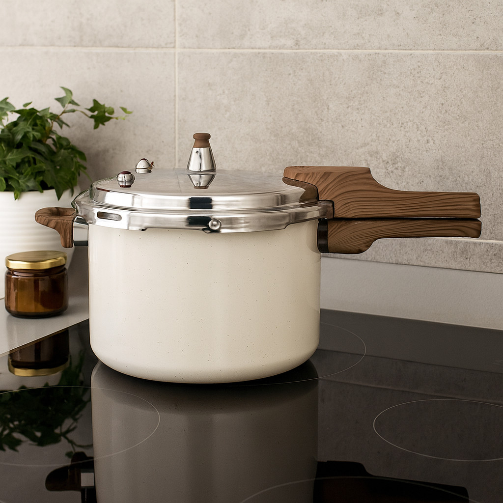 A Panela de Pressão Mimostyle Presscook 4,2L foi desenvolvida para oferecer praticidade, segurança e rapidez no preparo das suas receitas. Produzida em alumínio com revestimento antiaderente de alta qualidade, garante cozimento uniforme e evita que os alimentos grudem, facilitando a limpeza após o uso. Seu fundo triplo é compatível com fogões de indução, vitrocerâmico, a gás e elétrico, proporcionando versatilidade para diferentes tipos de cozinha. Possui válvula de segurança e trava de fechamento que asseguram o uso seguro no dia a dia. Com capacidade de 4,2 litros, é ideal para preparar refeições em família, desde grãos e carnes até receitas mais elaboradas. Seu design moderno, com acabamento em inox e cabos antitérmicos, une estilo e resistência, tornando-se uma peça essencial para quem busca eficiência e qualidade na cozinha. Detalhes do Produto Marca: Mimostyle Modelo: Presscook Capacidade: 4,2 litros Material: Alumínio com revestimento antiaderente Fundo: Compatível com indução, vitrocerâmico, gás e elétrico Acabamento: Inox com cabos de baquelite antitérmico Sistema de segurança: Trava de fechamento e válvula de alívio Uso: Cozimento rápido e prático de diversos alimentos
