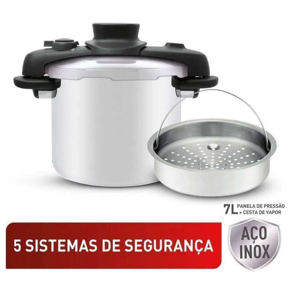 Panela de Pressão com Cesto em Inox Fundo Triplo 7 Litros Tefal