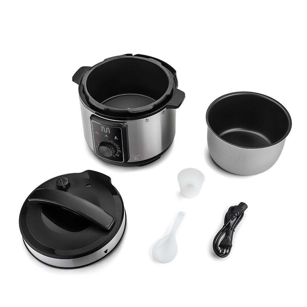 Transforme sua Cozinha com a Panela de Pressão Elétrica Multi! A Panela de Pressão Elétrica da Multi é a solução definitiva para um preparo rápido e sem complicações das suas receitas favoritas! Com uma impressionante capacidade de 4 litros, você pode cozinhar mais de uma vez e de forma eficiente, sem fazer barulho ou soltar vapor, graças à sua operação super silenciosa. Por que você vai adorar a Panela de Pressão Elétrica Multi? - Timer Inteligente: Programe até 60 minutos com 11 funções predefinidas para um preparo totalmente personalizado e prático. Simplesmente ajuste o tempo e deixe a panela cuidar do resto! - Função Manter Aquecido: Após o preparo, a panela desliga automaticamente e mantém sua comida quente e pronta para servir a qualquer momento. - Máxima Segurança: Com 10 dispositivos de segurança, incluindo travamento automático da tampa e aviso sonoro, você pode cozinhar com total tranquilidade. - Design Funcional: A cuba removível antiaderente evita que os alimentos grudem e facilita a limpeza. O cabo elétrico removível e a tampa com alça permitem um transporte seguro e conveniente. - Acabamento Sofisticado: A superfície em aço inox escovado combina sofisticação e durabilidade, resistindo a manchas e facilitando a manutenção. A Panela de Pressão Elétrica da Multi é a escolha ideal para quem valoriza eficiência, segurança e estilo na cozinha. Potência de 800W e acompanhada de copo dosador e colher, ela se adapta ao seu ritmo e às necessidades da sua família. Eleve o nível das suas preparações e garanta uma experiência culinária sem igual. Porque sua família merece o melhor! Ficha Técnica Marca: Multi Home Modelo: Panela de Pressão Elétrica 4L 800W/220V Preta Multi - GO082 Cor: Preto Potência: 800W Tensão: 220V Capacidade em Litros: 4L Dimensões(LxAxC): 29.5 x 30 x 30,5cm Peso: 3.81Kg Inmetro: UL-BR 24.1461 Garantia: 1 Ano Imagens meramente ilustrativas.