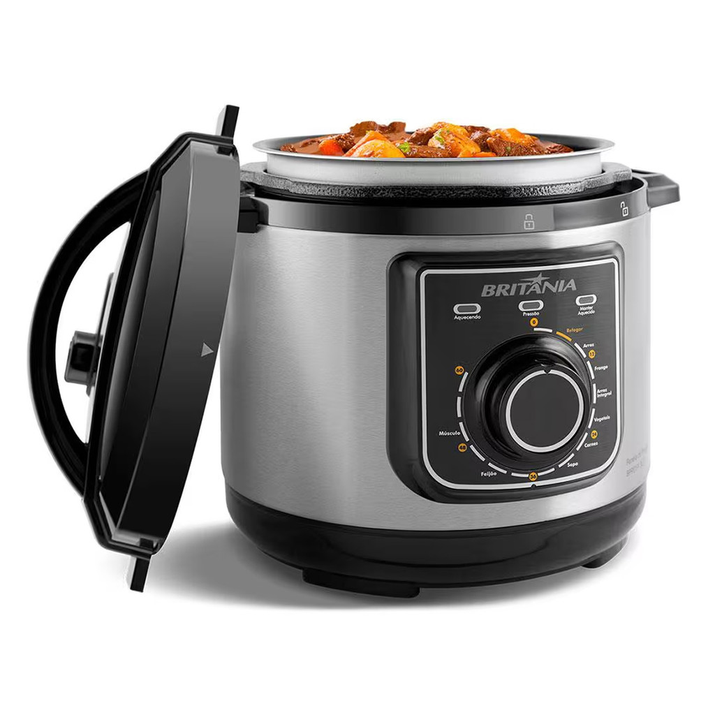 Panela de Pressão Elétrica Inox 700W Multifuncional 3 Litros BPP01PI Cozinha e Refogar Britânia