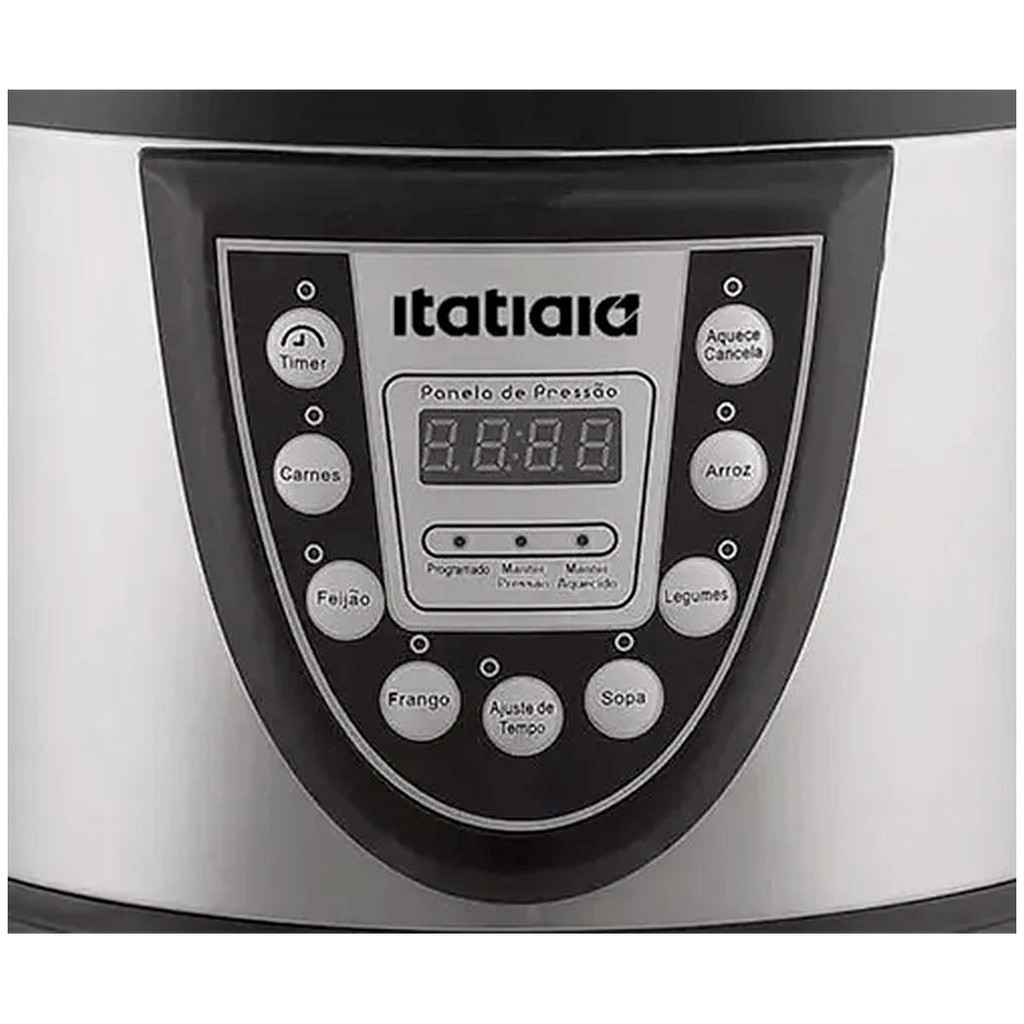 Panela de Pressão Elétrica Itatiaia Midi 5L 900W 127V Inox A Panela de Pressão Elétrica da linha Midi faz parte da linha de eletrodomésticos da Itatiaia. Ela será a sua melhor parceira na cozinha, perfeita para preparar refeições com rapidez, segurança e muito mais sabor. Confira suas funcionalidades. Seu Alimento no Ponto Certo: 6 funções pré-programadas que proporcionam agilidade no preparo das suas receitas. Segurança e Praticidade: Desligamento automático e aviso sonoro para maior segurança. Tecnologia e Conveniência: Painel digital e timer de até 90 minutos para um dia a dia mais prático. Estabilidade e Resistência: Pés antiderrapantes que oferecem segurança e conforto ao cozinhar. Alimento Sempre Quente: Mantenha a panela ligada e tenha o alimento aquecido por até 24 horas. Características adicionais: Panela antiaderente removível. Potência de 900W. Acompanha copo medidor, espátula e coletor de água. A Panela de Pressão Elétrica Midi da Itatiaia oferece seis funções pré-programadas, painel digital e pés antiderrapantes, tornando sua cozinha um ambiente ainda mais completo e funcional. Especificações Marca Itatiaia Modelo Midi Cor Inox Voltagem 127V Capacidade 5L Potência 900W Sistema de cozedura Pressão Dimensão Altura 31cm Largura 31cm Profundidade 34cm Peso 4.4kg Inmetro BRA22/00954 Imagens de caráter ilustrativo. Informações divulgadas de acordo com o manual do fabricante. Produto novo na caixa, lacrado com NF e garantia do fabricante de 12 meses. Em caso de dúvidas sobre informações técnicas, utilização, limitações e manuseio do produto, verifique o manual do fabricante. NAC014798 EAN7892946431399