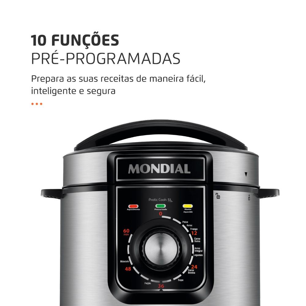 Panela de Pressão Elétrica Mondial 5L Pratic 900W Preto/Inox 127V Cook PE-48-5L-I
