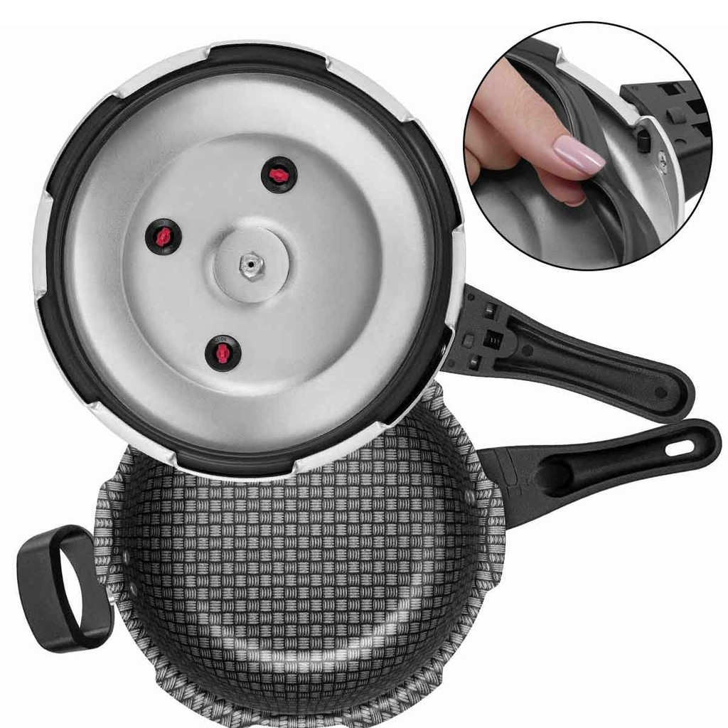 Panela de Pressão Fechamento Externo Antiaderente Patolux 5L com Trava e 4 Válvulas
