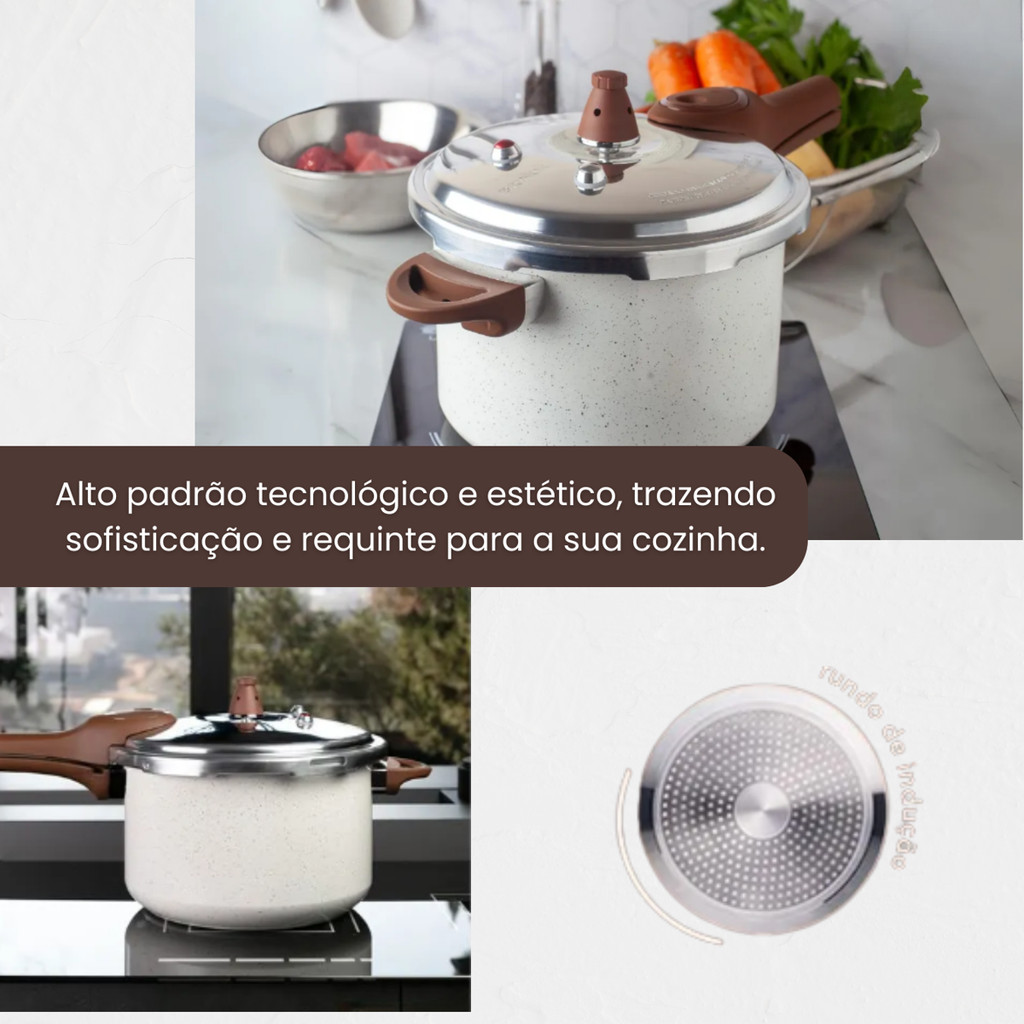 Panela De Pressão Indução Brinox Antiaderente Ceramic Life Pressure 4,2L Vanilla