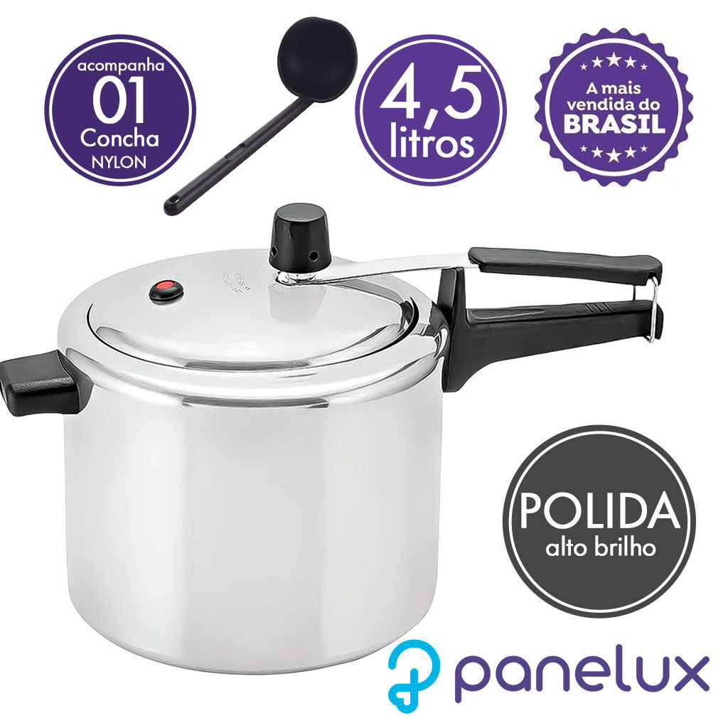 Panela de Pressão Panelux Classic 4,5 Litros em Alumínio Polido e Concha em Nylon