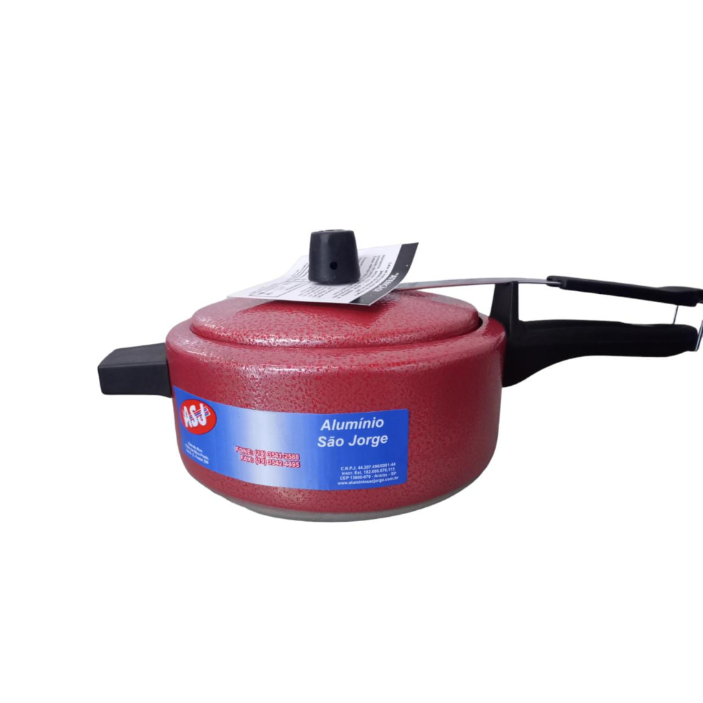 TODOS NOSSOS PRODUTOS SÃO APROVADOS PELO INMETRO PANELAS ASJ ALUMÍNIO FORTE E RESISTENTE Panela de pressão 3,0 litros várias cores Designe moderno e desenvolvida para tornar o preparo de suas receitas mais prático ao proporcionar um cozimento rápido e uniforme. Além de garantia de qualidade com aprovação do INMETRO, ela é ideal para deixar sua cozinha ainda mais bonita e completa. Segurança durante o manuseio para sua maior tranquilidade, a Panela é equipada com válvulas de segurança. Dispõe também de cabo e alça de baquelite antitérmico, material que não transmite calor e evita possíveis queimaduras. Pode ser utilizada em fogão a gás ou elétrico.
