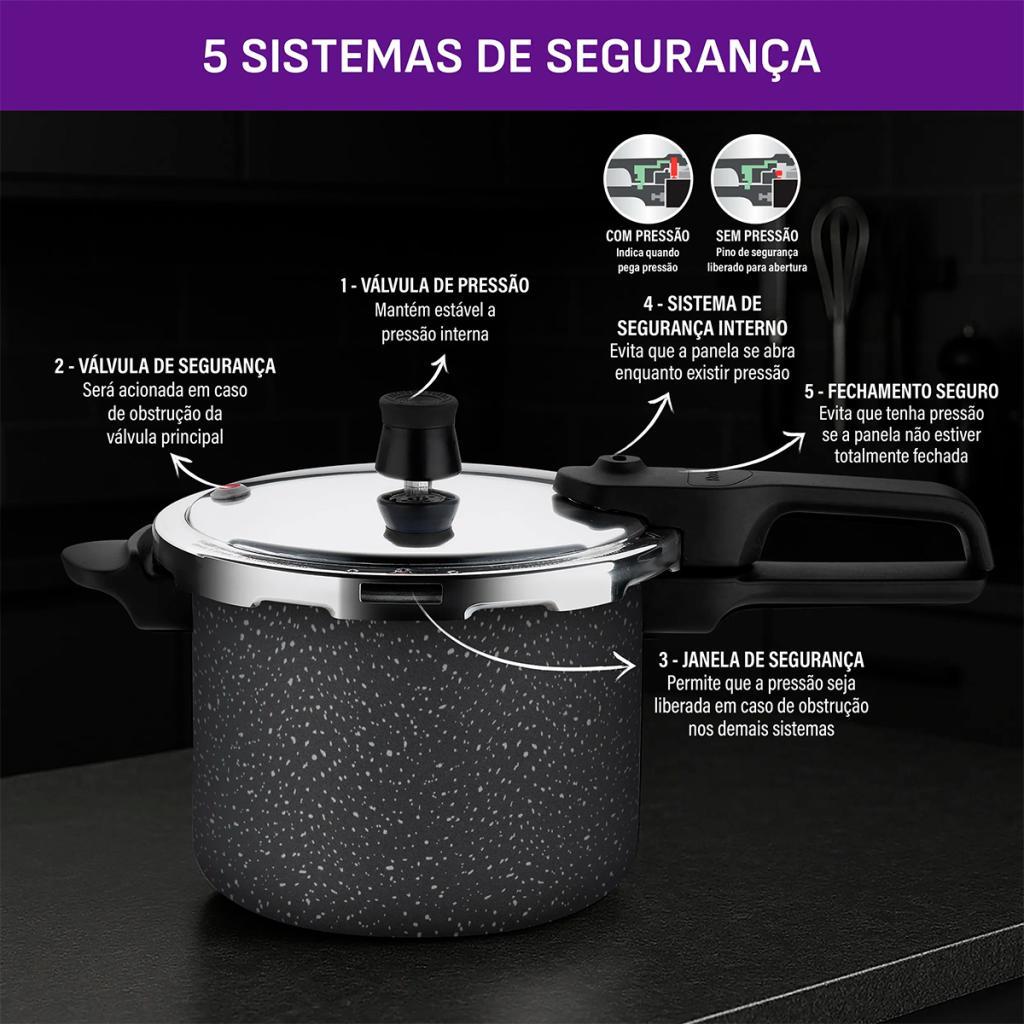 Panela de Pressão Rochedo Stone Pro 4,5 Litros com Revestimento Antiaderente e Fechamento Externo