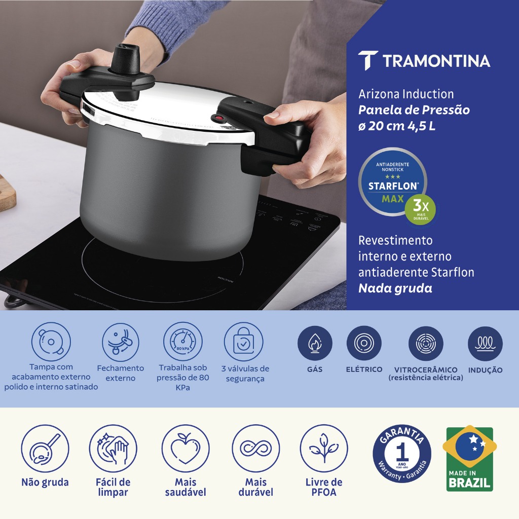 Panela de Pressão Tramontina Arizona Indução Revestimento Antiaderente Titânio 4,5 L