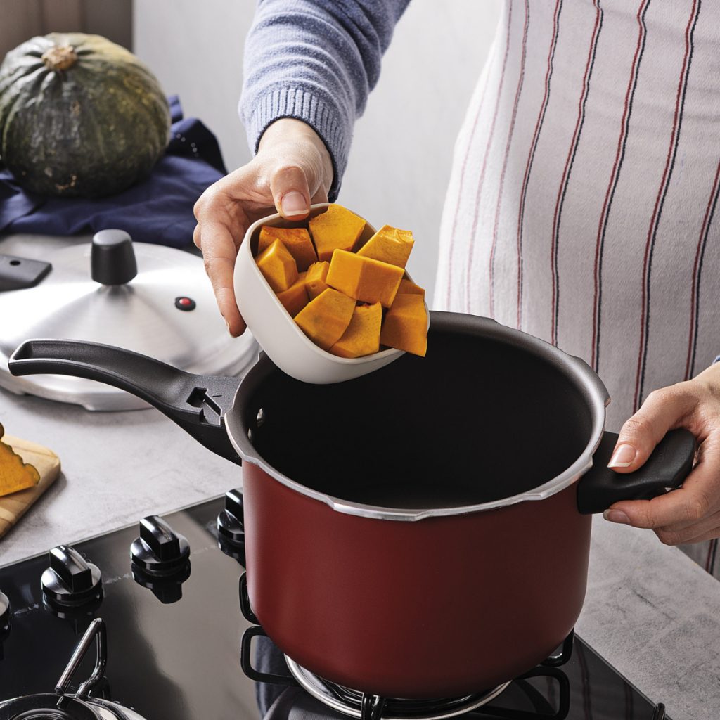 Panela de Pressão Tramontina Vancouver Effect 4,5 L Preparar refeições rápidas e saborosas com segurança nunca foi tão simples. A panela de pressão Tramontina Vancouver Effect une praticidade, estilo e confiança, tornando o dia a dia na cozinha mais fácil e garantindo tranquilidade em cada preparo. 🎨 Disponível nas cores preta e vermelha. ✅Corpo de alumínio com 3,2 mm de espessura que garante cozimento rápido e uniforme ✅ Revestimento interno e externo em antiaderente Starflon Max: não gruda, é fácil de limpar, mais durável e não prejudicial à saúde ✅ Tampa de alumínio com acabamento externo polido e interno satinado, que proporciona encaixe firme e seguro ✅ Alças e cabos de baquelite antitérmico para manuseio confortável e protegido ✅ Segurança reforçada no uso, ideal para cozinhar sem preocupações ✅ Compatível com fogões a gás, elétrico e vitrocerâmico (exceto indução) Conteúdo do conjunto: ➡️ 01 panela de pressão em alumínio com 20 cm de diâmetro e 4,5 L de capacidade 📏 Pesos e medidas aproximadas (Largura x Profundidade x Altura): 23,1 cm x 40,8 cm x 22,9 cm – 2,02 kg ⚠️ Cuidados e instruções: Pressão de trabalho: 80 kPa Não pode ser utilizada em máquina de lavar louças Acompanha manual de instruções Imagens meramente ilustrativas. As tonalidades podem variar de acordo com estoque, seu monitor ou até mesmo com a percepção dos seus olhos.