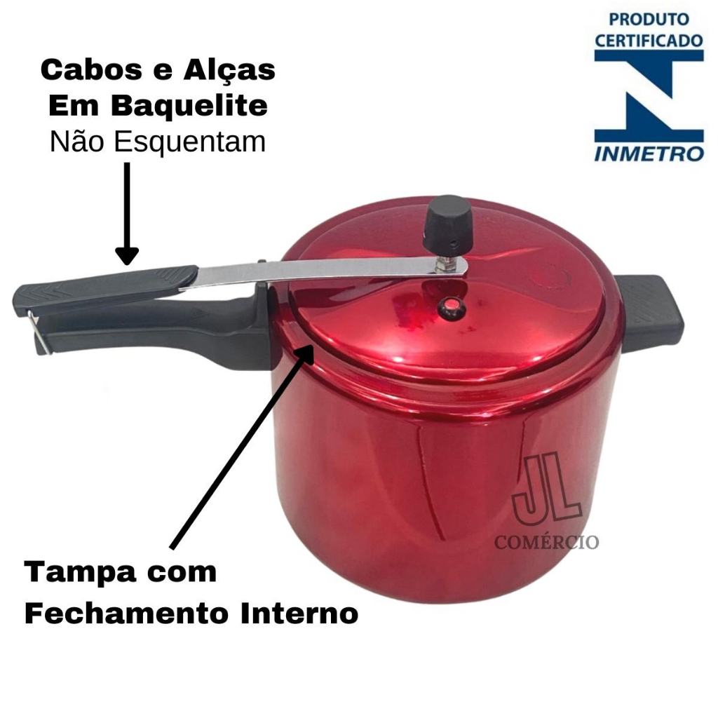 Panela De Pressão Vermelha 4,5 Litros Alumínio Certificado Pelo Inmetro