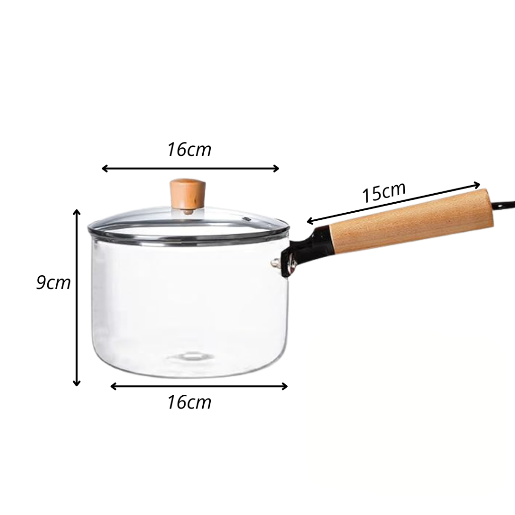 Panela de Vidro Transparente Cozinha Com Tampa Cabo de Madeira 1,8L