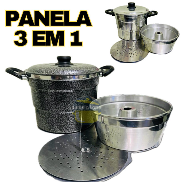 | Panela Multiuso 3 em 1 Cuscuzeira Pudim Legumes No Banho Maria e C... este produto | R$ 49,99 | — | 4.8/5 | — |