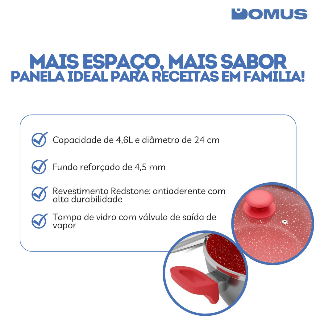 ***PRODUTO A PRONTO ENTREGA COM ENVIO IMEDIATO*** ITEM ORIGINAL COM NOTA FISCAL A Panela Philco PPN24A une alta capacidade com tecnologia de ponta para tornar seus preparos ainda mais rápidos, práticos e seguros. Seu revestimento antiaderente Redstone garante que os alimentos não grudem, proporciona facilidade na limpeza e não transfere sabor ou odor. Conta com tampa de vidro com saída de vapor, alças em baquelite emborrachado resistentes ao calor e fundo reforçado de 4,5 mm, que distribui melhor o calor e mantém a temperatura por mais tempo. Compatível com todos os tipos de fogões, incluindo indução. Especificações Técnicas: Marca: Philco Modelo: PPN24A Cor: Cinza Material: Alumínio com revestimento antiaderente Redstone Capacidade: 4,6 litros Diâmetro: 24 cm Altura: 18,5 cm Largura: 38 cm Comprimento: 24 cm Peso: 1,81 kg Tampa: Vidro com válvula de saída de vapor Compatibilidade: Gás, elétrico, radiante, vitrocerâmico e indução Mais praticidade, segurança e durabilidade para a sua cozinha. A Panela ideal para todas as receitas está aqui.