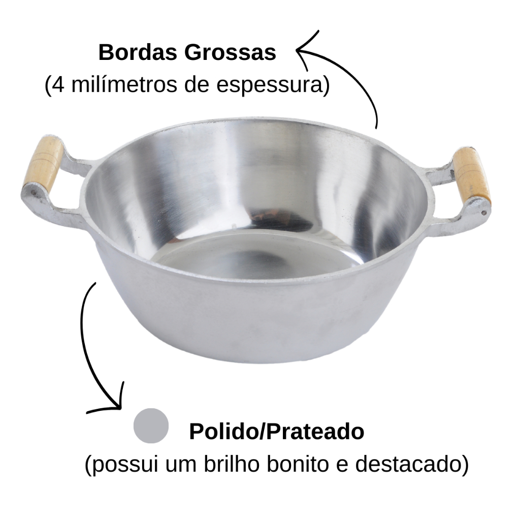 Panela Polida Alumínio Fundido Grosso n24 Prateada Cabos De Madeira