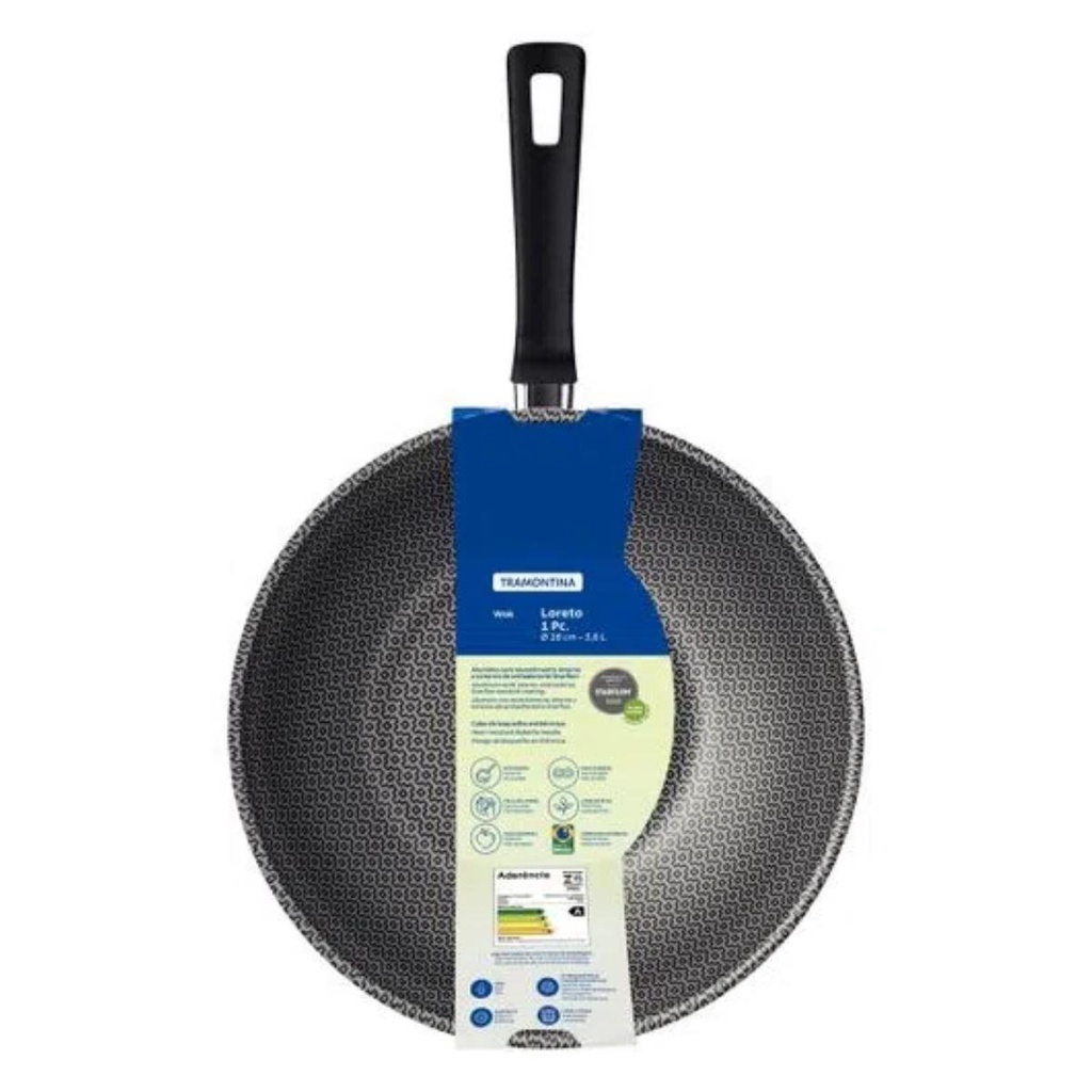 Complete sua cozinha com a wok Tramontina Loreto em alumínio com revestimento interno e externo antiaderente Starflon Max vermelho 28 centímetros de diâmetro 3,6 litros e garanta qualidade e praticidade na hora de preparar suas principais refeições! Desenvolvida com corpo de alumínio com espessura de 1,4 milímetros e com revestimento interno e externo de antiaderente Starflon Max, ela é a melhor opção para uso no seu dia a dia, pois garante o cozimento dos alimentos de maneira rápida e uniforme, evita que eles grudem em sua superfície e não é prejudicial a sua saúde. Com ela, você ainda garante uma utilização segura, pois seu cabo é em baquelite antitérmico, material que não aquece. Além dessas características, ela ainda é super fácil de limpar e pode ir à máquina de lavar louças, otimizando seu dia a dia e suas tarefas na cozinha. A escolha ideal para executar suas melhores receitas! Características: - Marca: Tramontina - Modelo: 20395728 *Imagem meramente ilustrativa Especificações Técnicas: - Corpo de alumínio com espessura de 1,4 mm que proporciona cozimento rápido e uniforme. - Revestimento interno e externo de antiaderente Starflon Max que não gruda, é fácil de limpar, mais durável e não é prejudicial à saúde, pois é livre de PFOA. - Cabo de baquelite antitérmico que oferece segurança durante o manuseio. - Pode ir à máquina de lavar louças facilitando seu dia a dia. Recomendações de Uso: - A capacidade volumétrica máxima para cozimento é de 3/4 da capacidade total da peça. - Posicione os cabos dos utensílios voltados ao centro do fogão. - Em fogões com grade, centralize a peça e alinhe o cabo com a grade. - Utensílios quentes devem estar fora do alcance das crianças. - Este produto não pode sofrer modificações. - Antes do primeiro uso, lave com esponja macia, sabão neutro ou detergente líquido. - Depois de secar, unte a área interna com óleo ou gordura e leve ao fogo por um ou dois minutos. - Deixe esfriar e lave novamente. - Seu utensílio Starflon está pronto para uso com ou sem gordura, sempre em fogo baixo ou médio (nunca superior a 350ºC). - Para mexer os alimentos use somente utensílios de silicone, nylon ou madeira. - Evite a imersão do utensílio quente em água fria. - Nunca utilize produtos abrasivos na lavagem. - Se deixar queimar alimentos, umedeça a área e reserve até que possa remover os resíduos grudados com esponja e sabão. - Para descarte dos produtos e embalagens siga as orientações de reciclagem vigentes. CERTIFICAÇÃO PRODUTO COM CERTIFICAÇÃO COMPULSÓRIA CERTIFICADA PELO OCP 0003, REGISTRO 001777/2018, MODELO PIPOQUEIRA E CLASSIFICAÇÃO DE ANTIADERÊNCIA A (ÓTIMA), CONFORME PORTARIA INMETRO 419/2012. Conteúdo da Embalagem: - 1x Wok em Alumínio