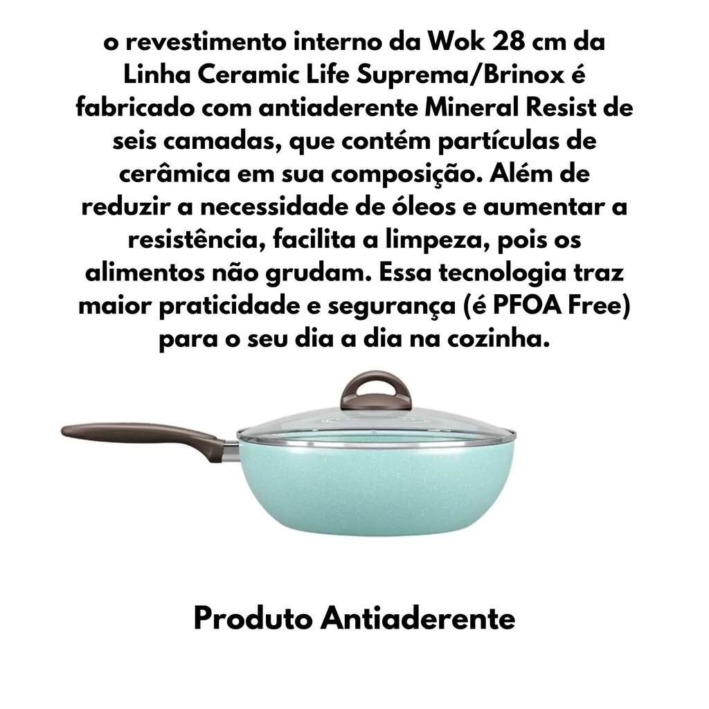Panela Wok com Tampa 28cm Revestimento Antiaderente Verde Ceramic Life Suprema Brinox - 7245/374 (N/A)