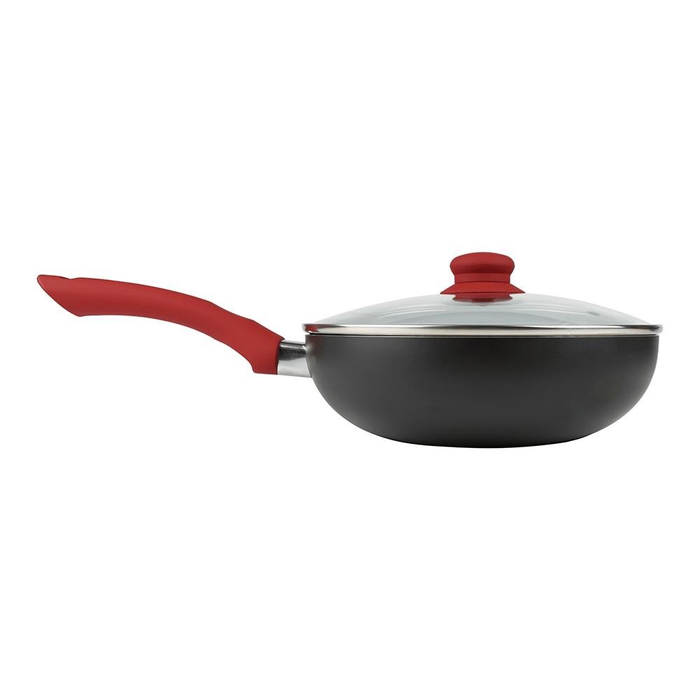A Panela Wok Mor é uma ótima opção para garantir toda praticidade na hora do preparo de suas refeições. Ideal para o uso diário, ela tem capacidade para até 2,3 Litros e se apresenta na cor preta com detalhes em vermelho. Produzida em estrutura de alumínio com revestimento antiaderente, permite que seu interior aqueça de maneira uniforme e acelere o processo de cozimento. Dessa maneira, os alimentos não grudam e ainda os deixa mais saudáveis, pois é necessário menos adição de óleo durante o preparo, além de ser mais fácil de lavar. Sua alça tem o revestimento em soft touch, antiderrapante com toque aveludado, que torna o produto moderno e de fácil manuseio. A tampa de vidro temperado com válvula também elimina a formação de pressão no interior da panela e permite cozinhar com segurança, visualizando o processo de cozimento. A Wok é bonita, resistente e sofisticada e vai completar sua cozinha! Diferenciais: - Produzida em estrutura de alumínio com revestimento antiaderente, permite que seu interior aqueça de maneira uniforme e acelere o processo de cozimento. - Alça com revestimento em Soft Touch, antiderrapante com toque aveludado, que torna o produto moderno e de fácil manuseio. - A tampa de vidro temperado com válvula também elimina a formação de pressão no interior da panela e permite cozinhar com segurança, visualizando o processo de cozimento.