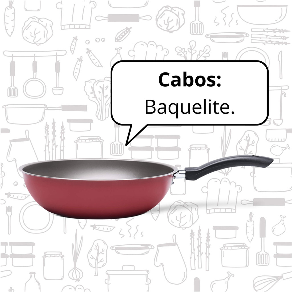 Queridinho da cozinha moderna, a wok é a panela ideal para um estilo de vida saudável, pois cozinha rapidamente preservando as propriedades dos ingredientes, como legumes picadinhos. Profunda e sem cantos, é a panela perfeita para yakisobas, receitas tailandesas e refogados. Com 26 cm de diâmetro e 3 litros de capacidade, a Wok da linha Ruby possui estrutura em alumínio que cozinha por igual e mais rápido, e cabo de baquelite que não esquenta. Seu antiaderente pro-flon não gruda, é fácil de limpar e livre de PFOA. Como todas as panelas da Brinox, a Wok Ruby possui Classificação A no Inmetro. Disponível na cor vermelha, a Wok Ruby traz mais destaque e alegria para a cozinha. A linha Ruby é uma ótima opção para o dia a dia pois se encaixa bem tanto em ambientes sofisticados quanto nos mais simples. - Material: Alumínio - Linha: Ruby - Certificação: Classificação A (ótima) Registro-001822/2018 OCP-Senai/RS - Cabos: Baquelite. Características: - Marca: Brinox - Modelo: 7131/464 *Imagens Meramente Ilustrativas* Conteúdo da Embalagem: - 01 Panela Wok Ruby - Vermelho 3L panela wok - brinox - wok 3l - panela