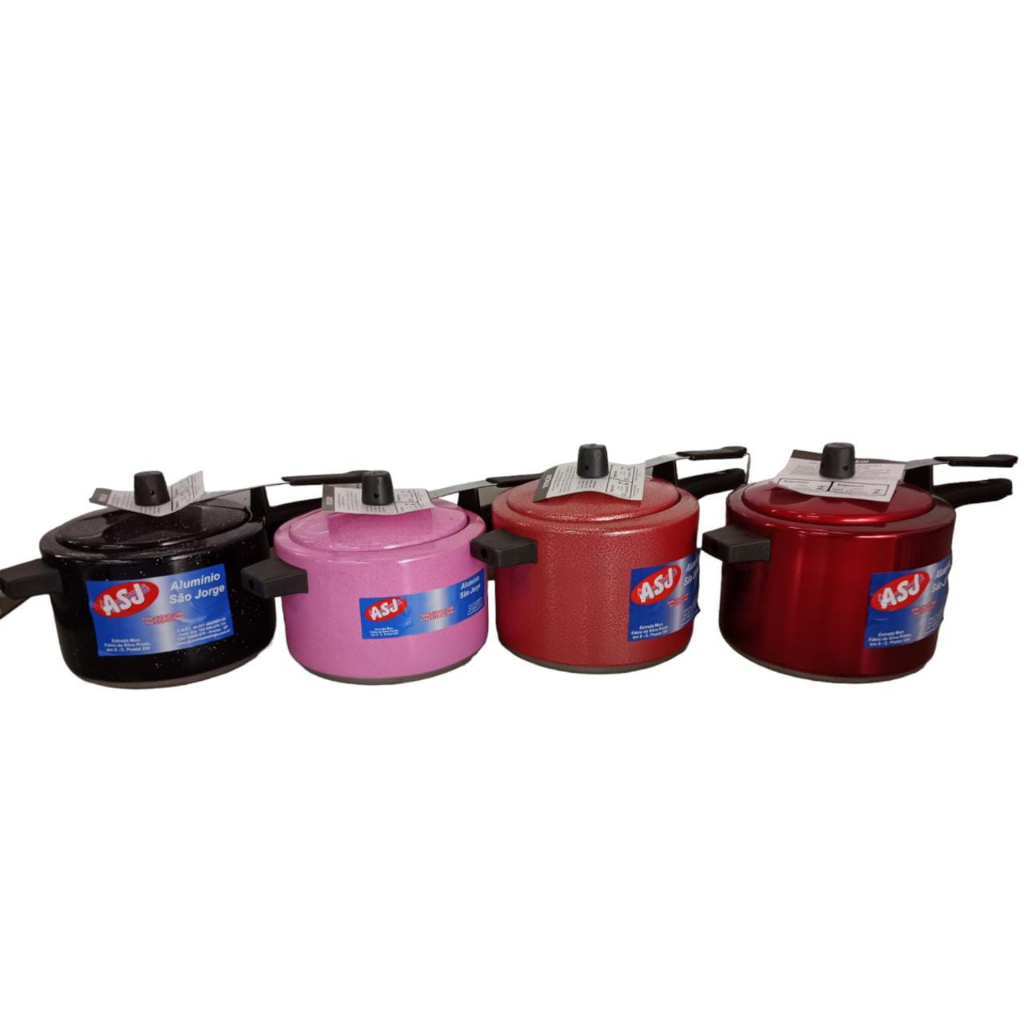 TODOS NOSSOS PRODUTOS SÃO APROVADOS PELO INMETRO PANELAS ASJ ALUMINIO FORTE E RESISTENTE. Panela de Pressão 4,0 litros várias cores Design moderno e desenvolvida para tornar o preparo de suas receitas mais prático ao proporcionar um cozimento rápido e uniforme. Além da garantia de qualidade com aprovação do INMETRO, ela é ideal para deixar sua cozinha ainda mais bonita e completa. Corpo de alumínio em alta espessura, craqueada garante maior durabilidade e resistência. Segurança durante o manuseio para sua maior tranquilidade, a Panela é equipada com válvulas de segurança. Dispõe também de cabo e alça de baquelite antitérmico, material que não transmite calor e evita possíveis queimaduras. Pode ser utilizada em fogão a gás ou elétrico.