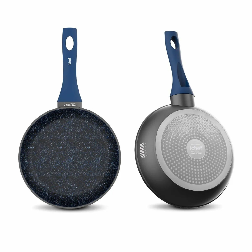 CONJUNTO DE DUAS PANELAS POLISHOP (HOME SAUTE DE 20 E 24CM) COM TAMPA 24CM Chegou a sua vez de realizar seu sonho de adulto e viver todos os dias a arte de não grudar nada! Com a linha Ichef Home, você elimina o uso do óleo e conta com um alto desempenho para preparar tudo que quiser, além de transportar do armário ao fogão e do fogão à mesa com facilidade – perfeita para o dia a dia! Sem cansar os braços e mais fácil de manusear A Panela Ichef Home Sauté Grand foi pensada para ser mais fácil de manusear no preparo das refeições e depois, na hora de lavar. Seu cabo conta, ainda, com a tecnologia Soft Touch que proporciona uma pegada macia e confortável! Antiaderente Polishop As panelas Ichef Polishop contam com antiaderente NÍVEL A, ou seja, seu revestimento exclusivo é o melhor para os alimentos deslizarem facilmente e sem grudar nada, segundo o Inmetro*. Aproveite receitas mais saudáveis sem usar uma gota de óleo! Todos os tipos de fogão Ganhe mais variedade de refeições: faça com facilidade omeletes, panquecas, postas de salmão, steaks, molhos e muito mais! Isso em qualquer tipo de fogão – a gás, elétrico, de indução ou cooktop! Ichef Polishop Todas as panelas Ichef Polishop são livres de PFOA e não soltam resíduos! Elas são resistentes, não lascam, não deformam e estão sempre prontas para a próxima receita porque são super fáceis de limpar! A Panela Ichef Home Sauté Grand 24cm é uma novidade exclusiva Ichef, a marca Gourmet da Polishop! Chegou a sua vez de realizar seu sonho de adulto e viver todos os dias a arte de não grudar nada! Com a linha Ichef Home, você elimina o uso do óleo e conta com um alto desempenho para preparar tudo que quiser, além de transportar do armário ao fogão e do fogão à mesa com facilidade – perfeita para o dia a dia! Sem cansar os braços e mais fácil de manusear A Panela Ichef Home Sauté Petit foi pensada para ser mais fácil de manusear no preparo das refeições e depois, na hora de lavar. Seu cabo conta, ainda, com a tecnologia Soft Touch que proporciona uma pegada macia e confortável! Antiaderente Polishop As panelas Ichef Polishop contam com antiaderente NÍVEL A, ou seja, seu revestimento exclusivo é o melhor para os alimentos deslizarem facilmente e sem grudar nada, segundo o Inmetro*. Aproveite receitas mais saudáveis sem usar uma gota de óleo! Todos os tipos de fogão Ganhe mais variedade de refeições: faça com facilidade omeletes, panquecas, postas de salmão, steaks, molhos e muito mais! Isso em qualquer tipo de fogão – a gás, elétrico, de indução ou cooktop! Ichef Polishop Todas as panelas Ichef Polishop são livres de PFOA e não soltam resíduos! Elas são resistentes, não lascam, não deformam e estão sempre prontas para a próxima receita porque são super fáceis de limpar! A Panela Ichef Home Sauté Petit 20cm é uma novidade exclusiva Ichef, a marca Gourmet da Polishop! A Panela ICHEF POLISHOP SHARK SERIES traz para você uma nova experiência no jeito de cozinhar no fogão, assar no forno e servir direto à mesa. E sem grudar nada! E com sua prática Tampa ICHEF POLISHOP SHARK SERIES em vidro temperado e saída de vapor, ela prepara suas receitas com mais sabor e sem sujar o seu fogão! Omeletes, carnes recheadas, legumes salteados e molhos ficam mais suculentos e saborosos preparados com a convecção do ar quente criada pelas Tampas ICHEF! PRECISOU DO UTENSÍLIO PARA MEXER A RECEITA? ELE ESTARÁ SEMPRE À MÃO! Só a Tampa ICHEF POLISHOP SHARK SERIES conta com um inédito e inteligente apoio em seu pegador, que deixa seus utensílios sempre à mão e facilita o preparo das suas refeições, sem precisar sujar a pia ou pratos! Com elegante acabamento em aço inox e encaixe perfeito na sua Panela ICHEF POLISHOP SHARK SERIES, a Tampa é leve, resistente a altas temperaturas! Com a Tampa ICHEF POLISHOP, suas receitas ficam mais suculentas e saborosas em todos os tipos de fogão: a gás, elétrico, de cerâmica e por indução! E na hora de limpar, ela também faz bonito: em um piscar de olhos já está limpa e pronta para a próxima receita! Garanta a sua tranquilidade e a da sua família SEM SAIR DE CASA! Peça já sua Tampa ICHEF POLISHOP SHARK SERIES e receba no conforto e na segurança do seu lar! A Tampa ICHEF POLISHOP SHARK SERIES é mais uma superexclusividade que você só encontra na POLISHOP!