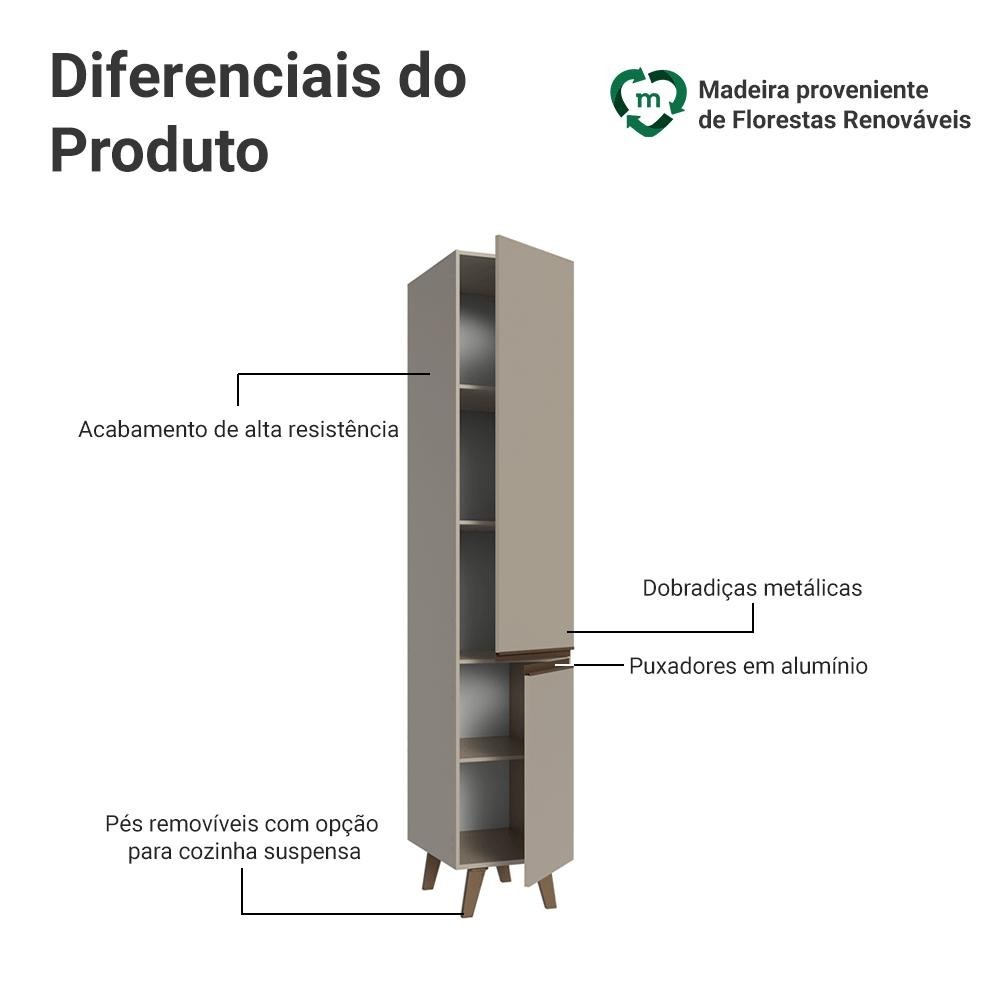 O Paneleiro Suspenso da linha Nice da Madesa é a escolha ideal para quem busca mais organização e aproveitamento na cozinha. Com quatro prateleiras e cinco nichos, ideais para acomodar louças, utensílios, mantimentos ou pequenos eletroportáteis. A linha Nice chega em uma nova versão no tom crema, uma tonalidade suave que transmite aconchego e leveza. Outro diferencial está nos puxadores em bronze metalizado e pés em bronze sólido, que acrescentam um toque contemporâneo. Produzido com materiais de qualidade, o paneleiro conta com dobradiças metálicas nas portas e puxadores em perfil de alumínio, discretos e resistentes, o acabamento de alta resistência mantém a beleza do móvel por muito mais tempo. Medidas totais: - 211 cm de altura - 40 cm de largura - 52 cm de profundidade O que você recebe: - Um (1) Paneleiro com duas (2) portas Código do produto: G264007PNCCT É importante saber: - Material: MDP - Imagens meramente ilustrativas, a decoração não acompanha o produto. - A Madesa não oferece serviço de montagem. - O produto segue com manual e todas as ferragens necessárias para a instalação. A Madesa possui compromisso com a sustentabilidade. Geramos energia limpa em nossa própria usina, priorizamos fornecedores responsáveis e utilizamos plástico reciclado em nossa produção. Além disso, reinserimos sobras no ciclo de reciclagem e investimos no desenvolvimento de nossos colaboradores e da comunidade. Garantia: Este produto conta com 1 ano de garantia total, sendo 3 meses de garantia legal e 9 meses de garantia contratual. A garantia cobre exclusivamente defeitos de fabricação e vícios ocultos. Não estão cobertos: problemas decorrentes de montagem incorreta, uso inadequado, exposição à umidade, calor ou luz solar direta, modificações no produto ou desgaste natural.