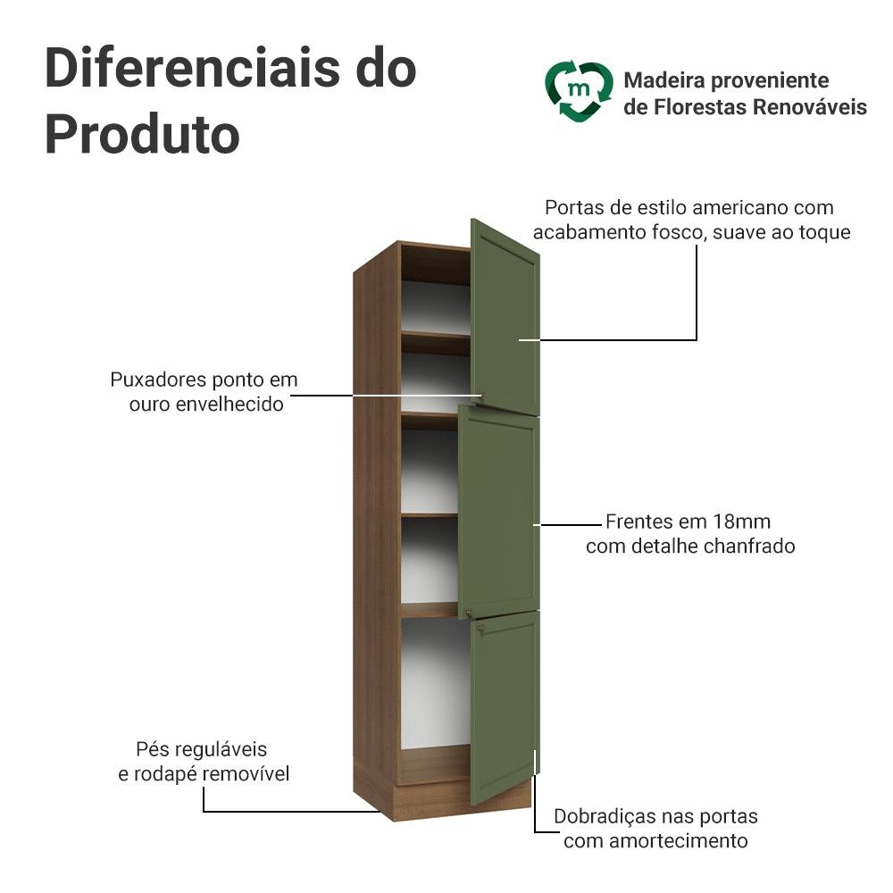 Paneleiro 60 cm 3 Portas Rustic/Verde Vik Madesa