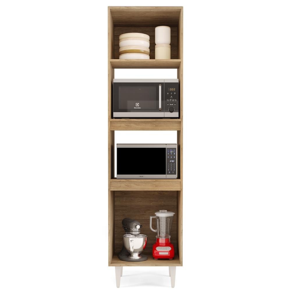 Paneleiro Cozinha Torre Quente 56cm Colorado Castanho/Preto - Lumil Móveis Com design funcional, esse Paneleiro De Cozinha é ideal para quem busca otimizar o espaço da Cozinha e manter a organização com praticidade e estilo. Produzido em MDP com acabamento em pintura BP, o móvel oferece resistência e durabilidade. Conta com uma porta superior, dois nichos centrais e duas portas inferiores. As dobradiças metálicas garantem abertura suave e maior vida útil. Os nichos acomodam forno elétrico, micro-ondas ou utensílios, facilitando a rotina diária. Com visual moderno, o Armário De Cozinha se adapta a diferentes ambientes, e o Paneleiro Para Micro-Ondas complementa com eficiência a cozinha. ESPECIFICAÇÕES Dimensões do Produto Largura: 56,5 cm. Altura: 202 cm. Profundidade: 42 cm. Peso: 40 Kg. Outras medidas (LxP) Espaço livre de cada nicho: 53x40 cm. Características do Produto Material da Estrutura: MDP/MDF. Espessura das Chapas: 15mm. Acabamento: Pintura BP. Peso Suportado: 60 kg Distribuídos. Escala de Brilho: Fosco. Possui Prateleiras: Sim. Material da Prateleira: MDP. Quantidade de Prateleiras: 1 Prateleira. Possui Portas: Sim. Material da Porta: MDP. Quantidade de Portas: 3 Portas. Tipo de Porta: Convencional. Tipo de Dobradiças: Metálicas. Possui Gavetas: Não. Possui Nichos: Sim. Quantidade de Nichos: 2 Nichos. Possui Puxador: Sim, alumínio. Material do Puxador: Alumínio. Possui Pés: Sim, reguláveis. Material dos Pés: PVC. Diferenciais: - Design moderno. - Nichos para forno e micro-ondas. - Possui pés reguláveis, 17 cm a 18,5 cm. Sistema de Montagem: Cavilhas/Parafusos. Manual de Montagem: Sim. Complexidade da Montagem: Média. Volumes: 1 Volume. Conteúdo da Embalagem: 1 Paneleiro. Garantia do Fabricante: 90 dias contra defeito de fabricação. Montagem: Recomendamos que seja feita por um profissional. Recomendação de Limpeza: Utilize pano úmido. Observações importantes: - Produto para uso residencial em ambiente interno, não devendo ficar exposto diretamente ao sol, calor e umidades excessivas. - Pode haver alguma diferença de tonalidade entre a imagem e o produto real, por conta do tratamento de imagens e a calibração de cores do seu monitor. - As imagens são meramente ilustrativas, não acompanham objetos de decoração e eletrônicos. - Ao receber a mercadoria, o cliente deve verificar as condições da embalagem, caso haja alguma avaria não assine o comprovante de recebimento. - Montagem, desmontagem e outras instalações serão de responsabilidade do cliente. Não nos responsabilizamos, no ato da entrega, por subir escadas/elevadores ou pelo transporte por guincho em apartamentos. Eventuais despesas são de responsabilidade do comprador. - Confira as dimensões do produto e certifique-se de que passará normalmente por supostos elevadores, portas, escadas e/ou corredores de sua residência.