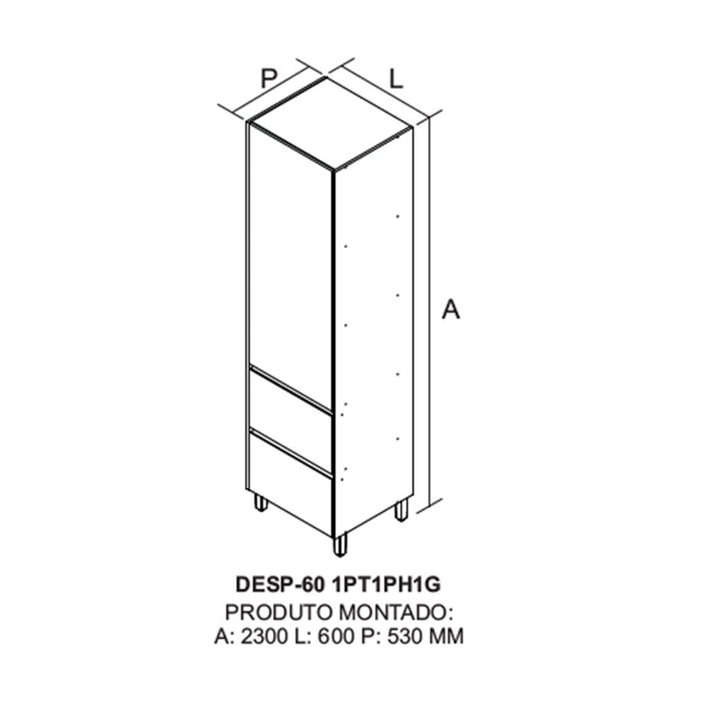 Paneleiro/Dispenseiro 2 Portas 1 Gaveta Altura 230cm 100% MDF Dobradiça Slow Motion Lúmina Itatiaia
