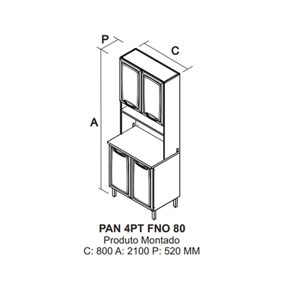 Paneleiro em Aço 4 Portas 80cm Nicho para Forno New Premium Itatiaia